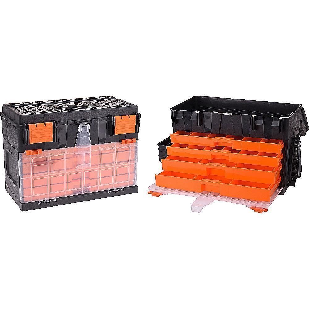 Werkzeugkasten Angelkoffer 45x26x32cm schwarz/orange Werkzeugkiste Werkzeugbox Werkze