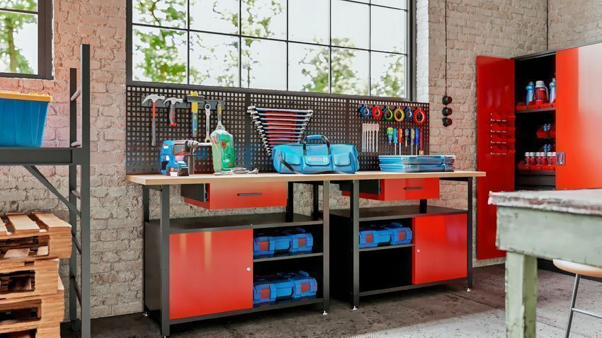 Werkzeugschrank Werkstattschrank mit Schubladen 185 x 92 x 50 cm Anthrazit-rot