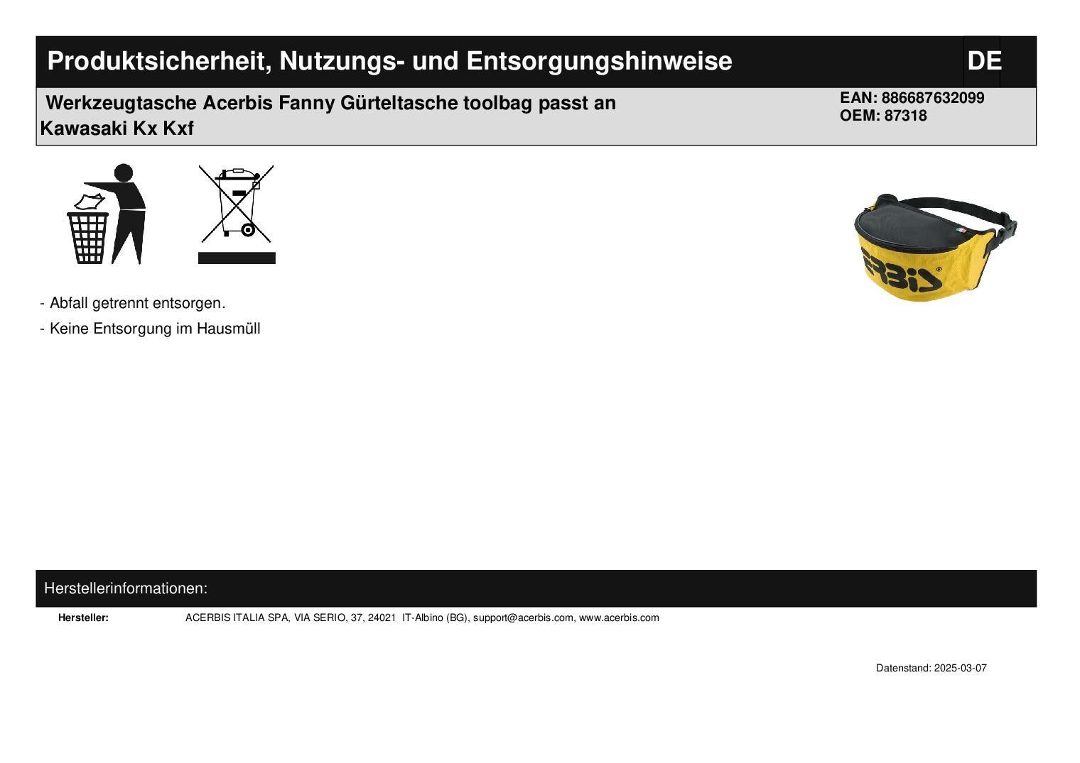 Acerbis Werkzeugtasche Acerbis Fanny Gürteltasche toolbag passt an Kawasaki Kx Kxf
