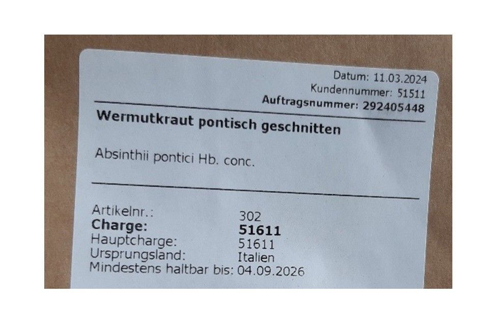 Wermutkraut pontisch geschnitten Absinthii pontici Hb. conc Ursprungsland: Italien Wer den Echten Wermut zu bitter (und intensiv) findet, sollte diesen Pontischen (römischen) Wermut probieren. Er wird auch heute noch häufig zum Aromatisieren von Wermutweinen verwendet 500 g mindestens haltbar bis 04