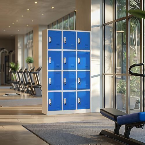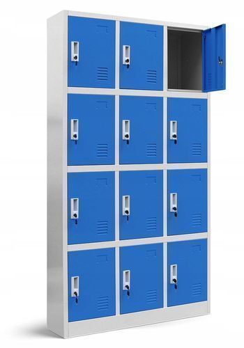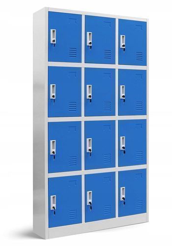 Wertfachschrank Metallspind 185x90x40 cm, 12 Türen, grau/blau