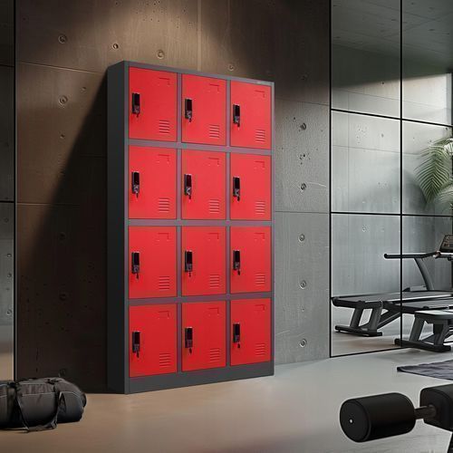 Wertfachschrank Schließfachschrank Fächerschrank 185x90x40 cm Anthrazit-rot
