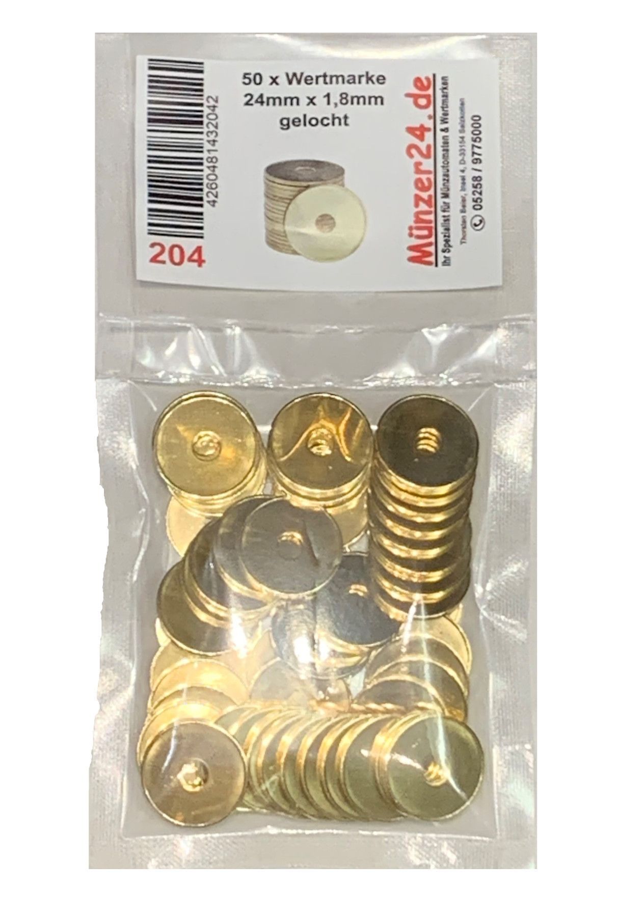 Wertmarke WM2 - 24mm x 1,8mm, kompatibel mit Waschmarke Miele WM2 1699370, VE=50