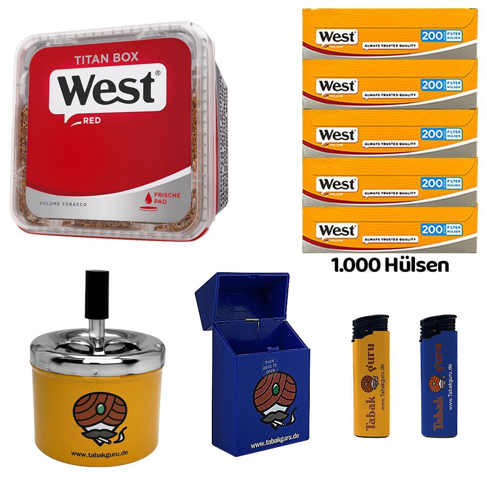 WEST Red/Rot Volumentabak Titan Box à 280g, Yellow Hülsen, Drehascher, Zubehör