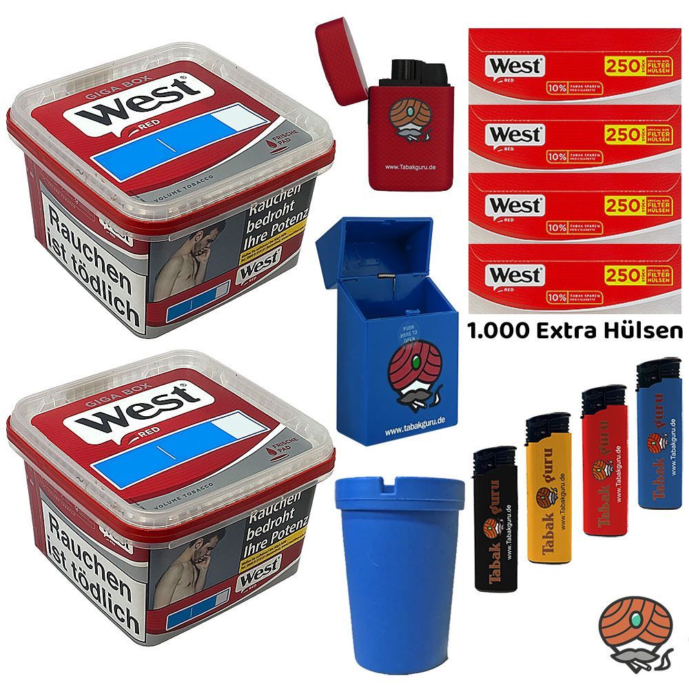 West Red Tabak/Stopftabak Giga Box 2x 160g, 1000 Extra Hülsen, viel Zubehör