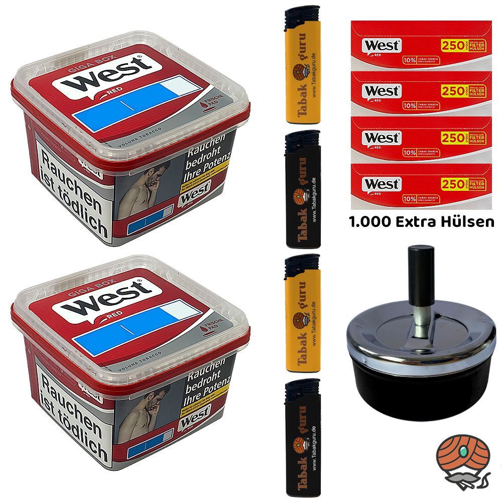 West Red Tabak/Volumentabak Giga Box 2x 160g, 1000 Extra Hülsen, Zubehör