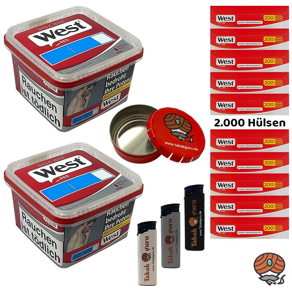 West Red Tabak/Volumentabak Giga Box 2x 160g, 2000 Hülsen, Ascher, Feuerzeuge