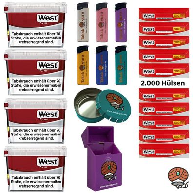 West Red Volumentabak Box 4x 115g, 2000 West Extra Hülsen + Zubehör