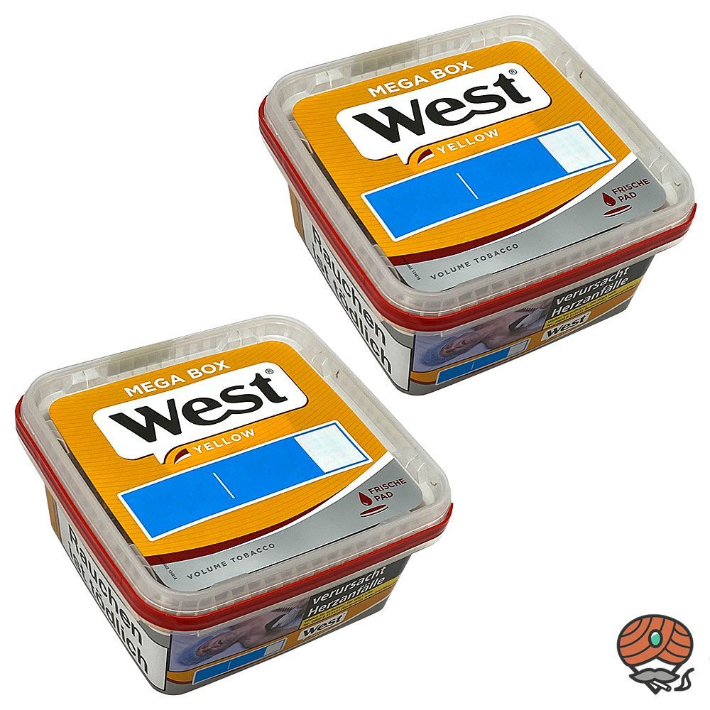 2 x West Yellow Volumentabak Mega Box Tabak: West Yellow Volumentabak ist ein hochwertiger, sehr ergiebiger Volumentabak Stopftabak, der sich vor allem zum Stopfen von Zigaretten mit der Maschine eignet. Die Tabakmischung ist ein American Blend, der aus sorgsam ausgewählten Virginia-, Burley und Ori