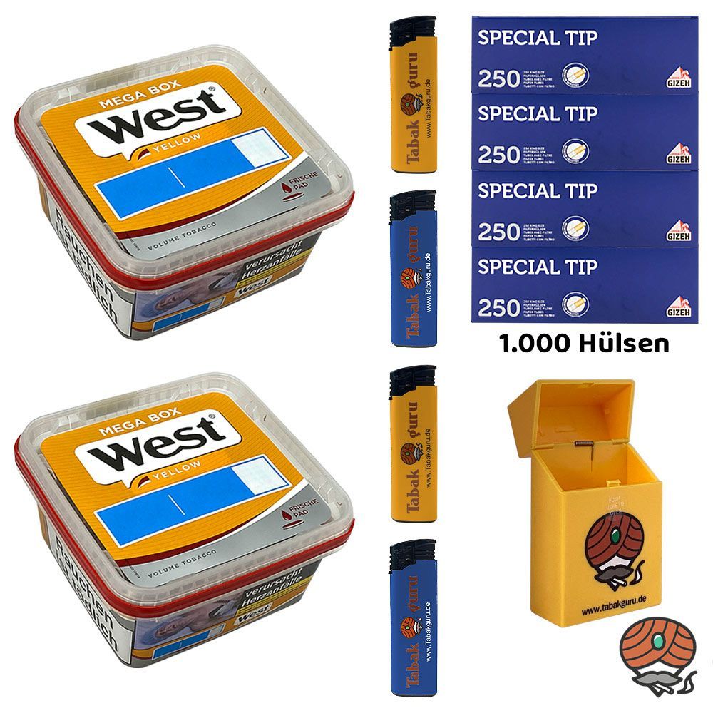 West Yellow Volumentabak Mega Box 2x 105g, Gizeh Special Tip Hülsen, Zubehör
