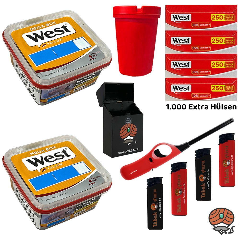 West Yellow Volumentabak Mega Box 2x 105g + Red Extra Hülsen + Stabfeuerzeug