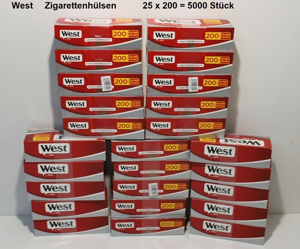 West Zigarettenhülsen 25 x 200 = 5000 Stück. NEU und in der Originalverpackung.
