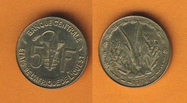 Westafrikanische Staaten Etats de I Afrrique de I Quest 5 Francs 1976
