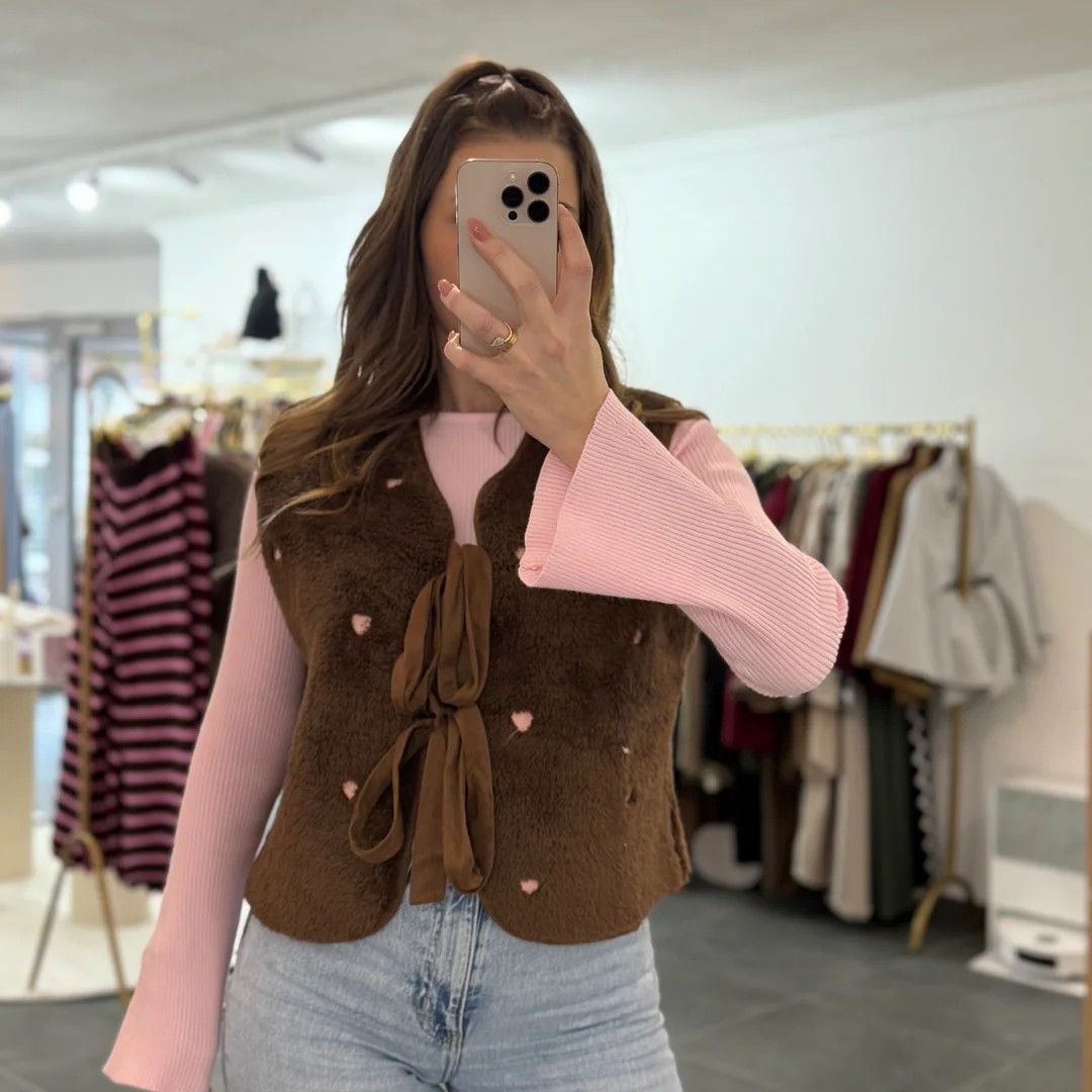 Weste Herz Damen Madita Braun Größe S-M Frau Weste mit Schnürverschluss Ärmellos