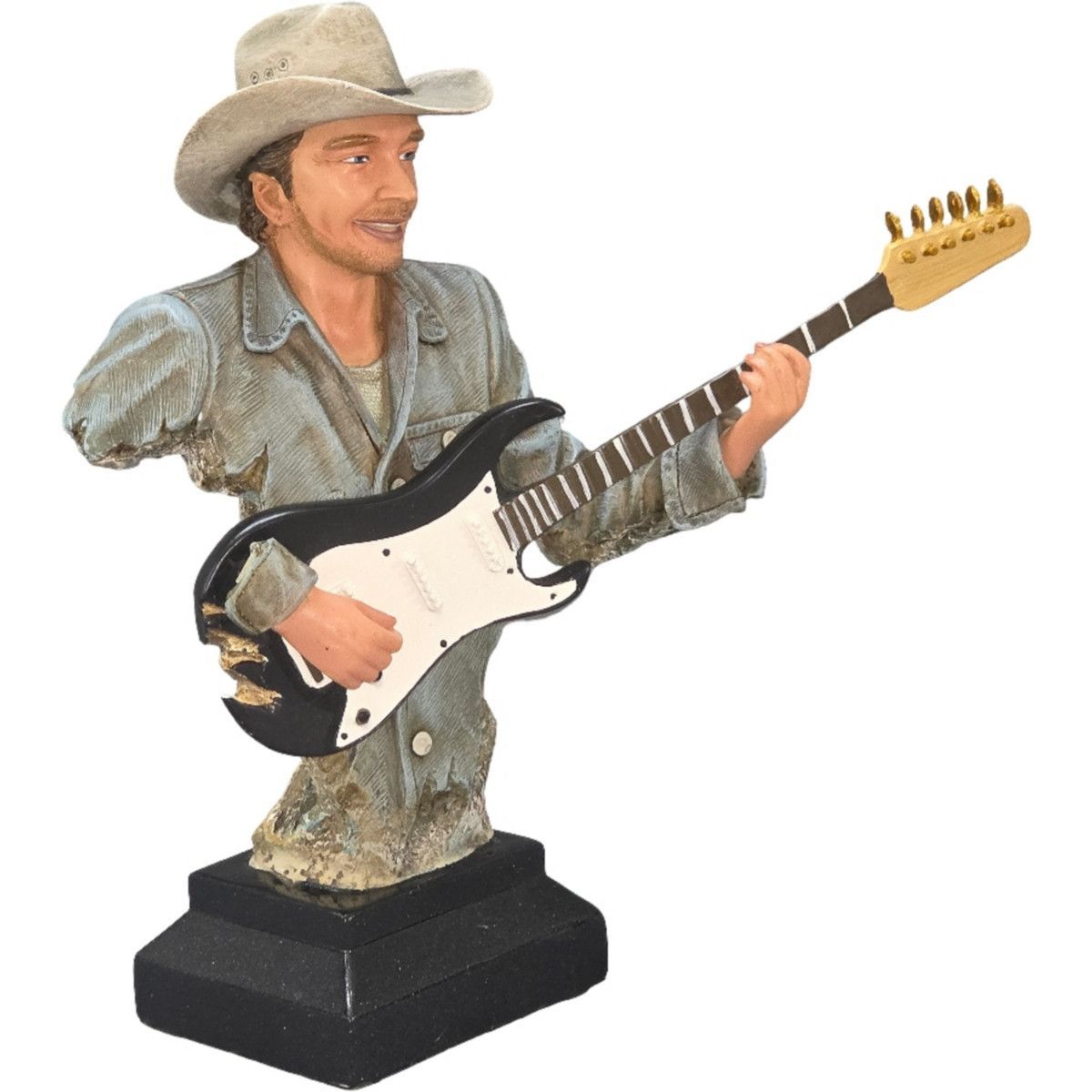 Western Cowboy Musiker Büste mit schwarz-weißer E-Gitarre (Gr. 25x21x13cm)