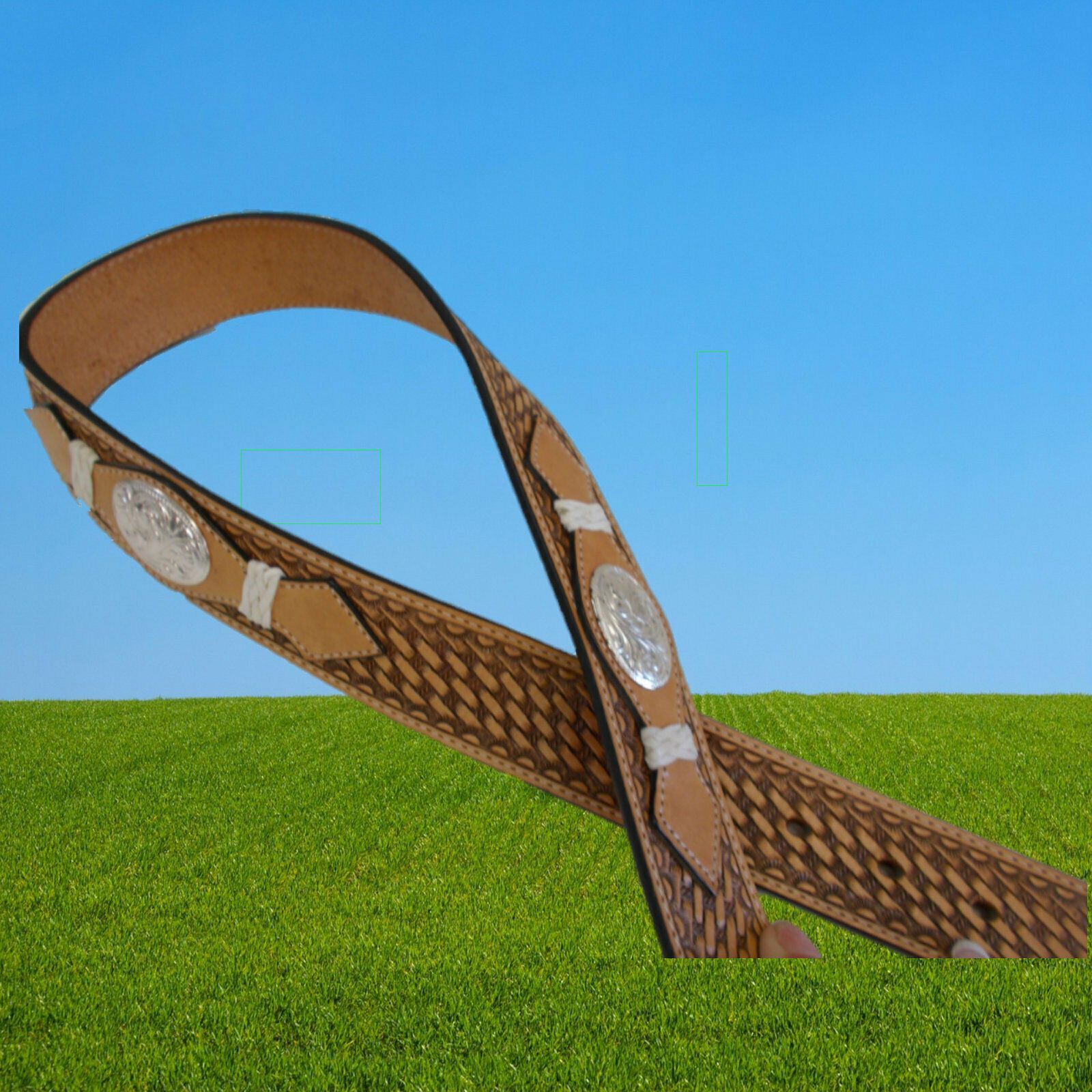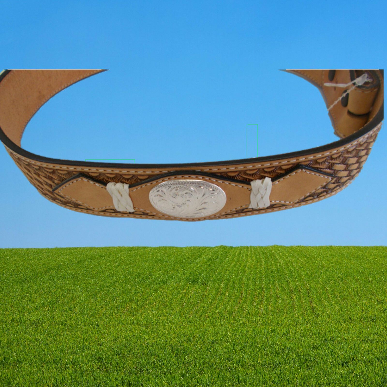 Continental Ledergürtel ohne Gürtelschnalle, light oiled Sehr hochwertiger punzierter Ledergürtel Dickes robustes Leder Schnalle mittels Druckknopf wechselbar (für Buckles geeignet) Mit Silber Concho und Rohhaut Flecht Verzierungen im Leder Der Gürtel wird ohne Gürtelschnalle geliefert. Sie können e