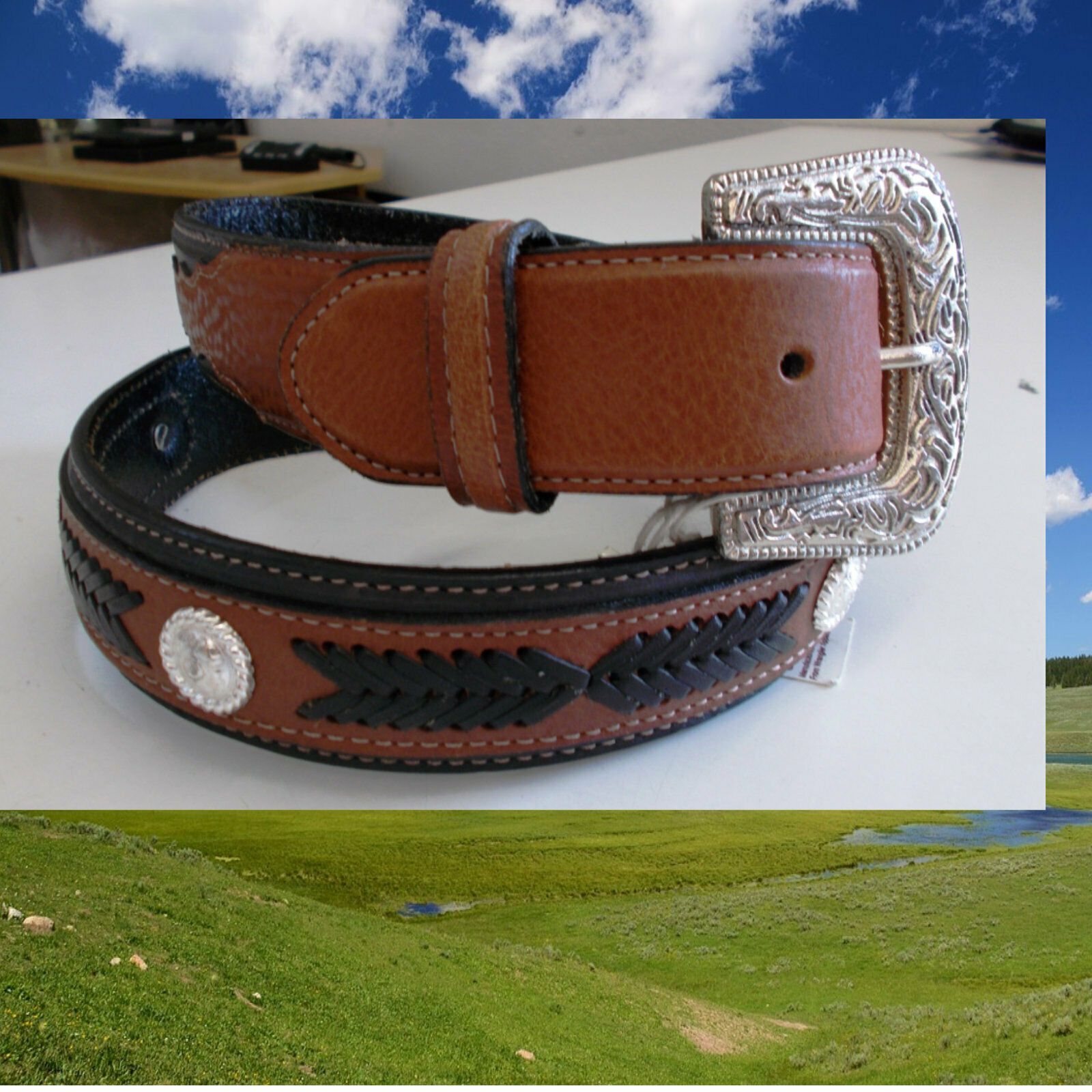 Ledergürtel von Twenty X Sehr stabiler Ledergürtel Dickes robustes Leder Schnalle mittels Druckknopf wechselbar (für Buckles geeignet) Mit Silber Concha Flecht Verzierungen im Leder Rücksendungen Retouren bitte NICHT mit Hermes senden. Mit diesem Versender gibt es enorme Probleme mit der Zustellung