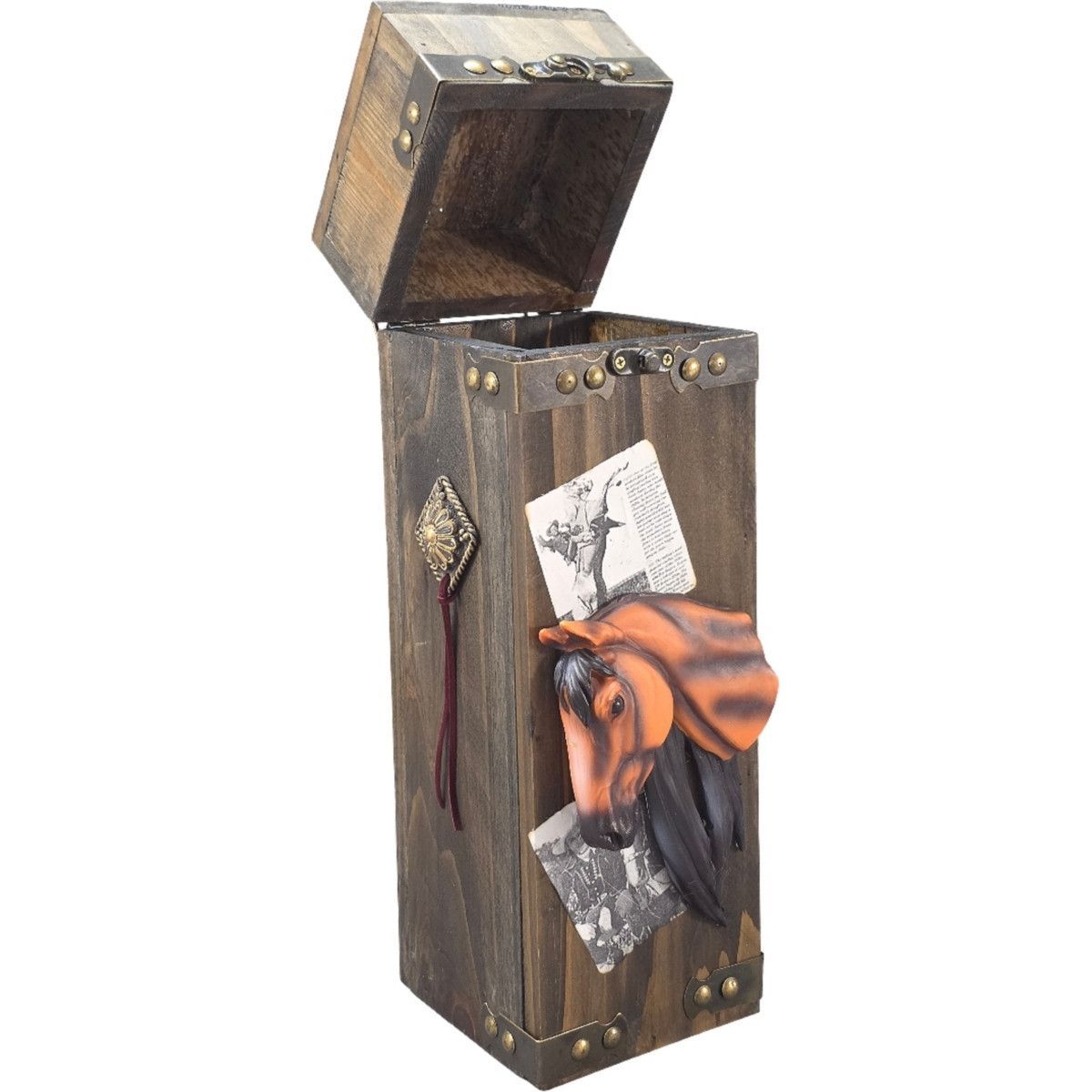 Western Holz Flaschenbox Pferd Flaschendose zum öffnen 35cm (Gr. 35x11cm)