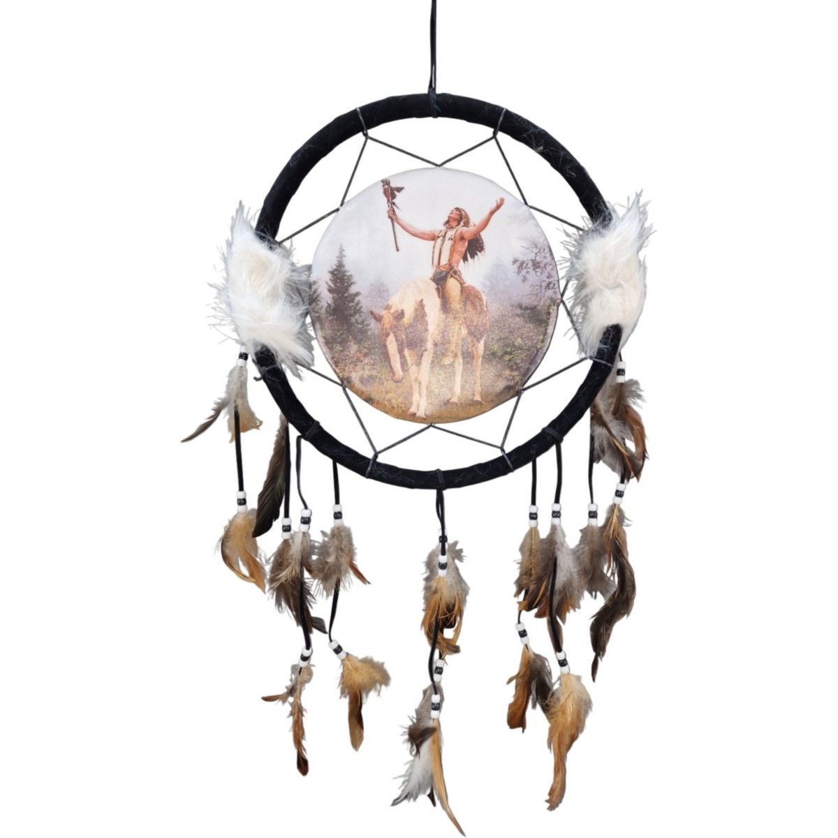 Western Traumfänger schwarz mit Indianer auf Pferd