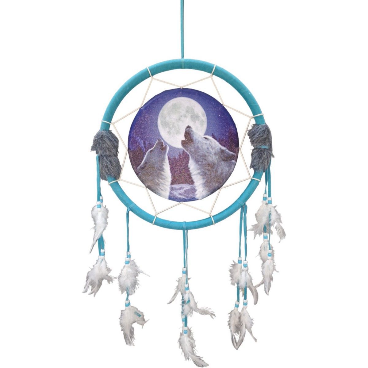 Western Traumfänger türkis mit heulenden Wölfen