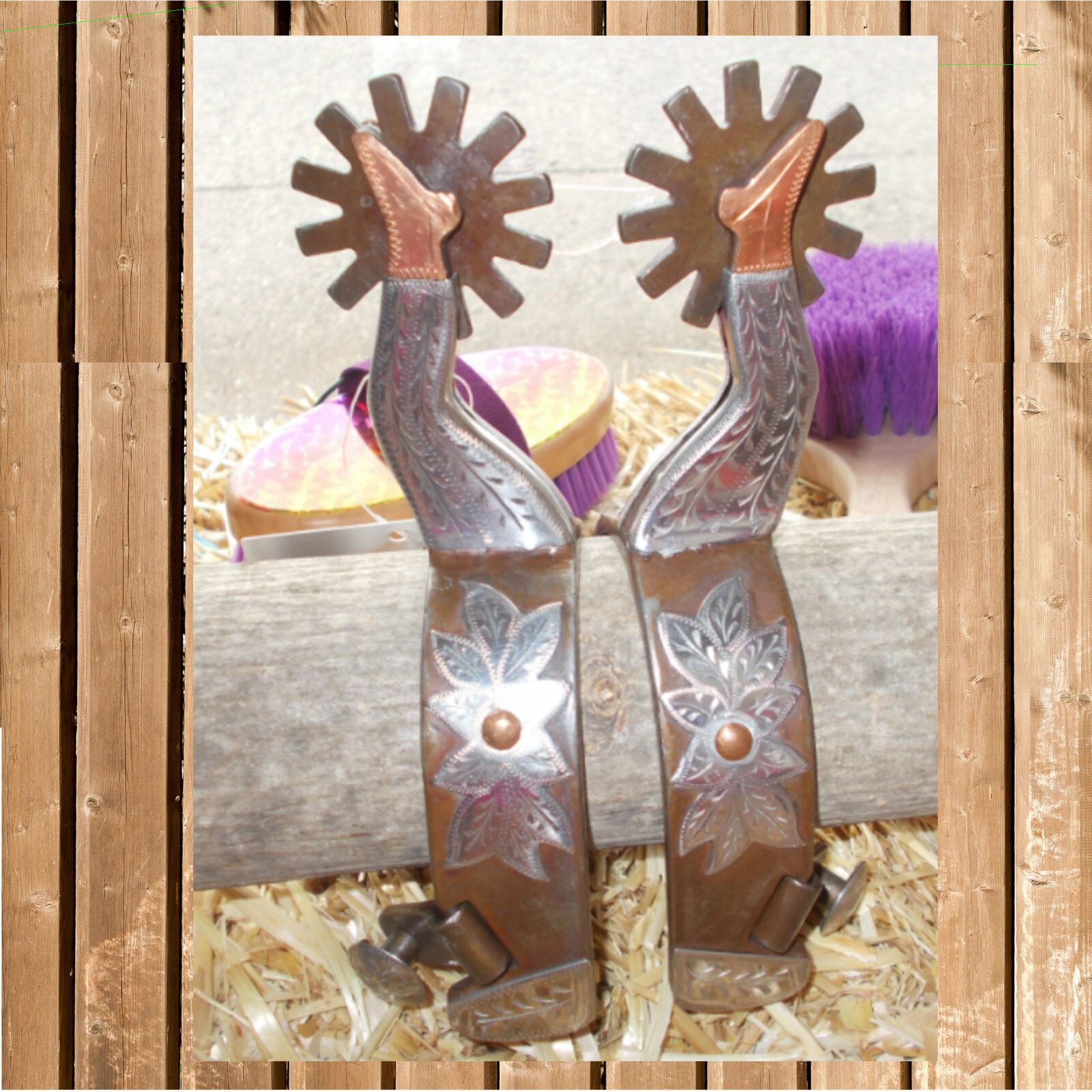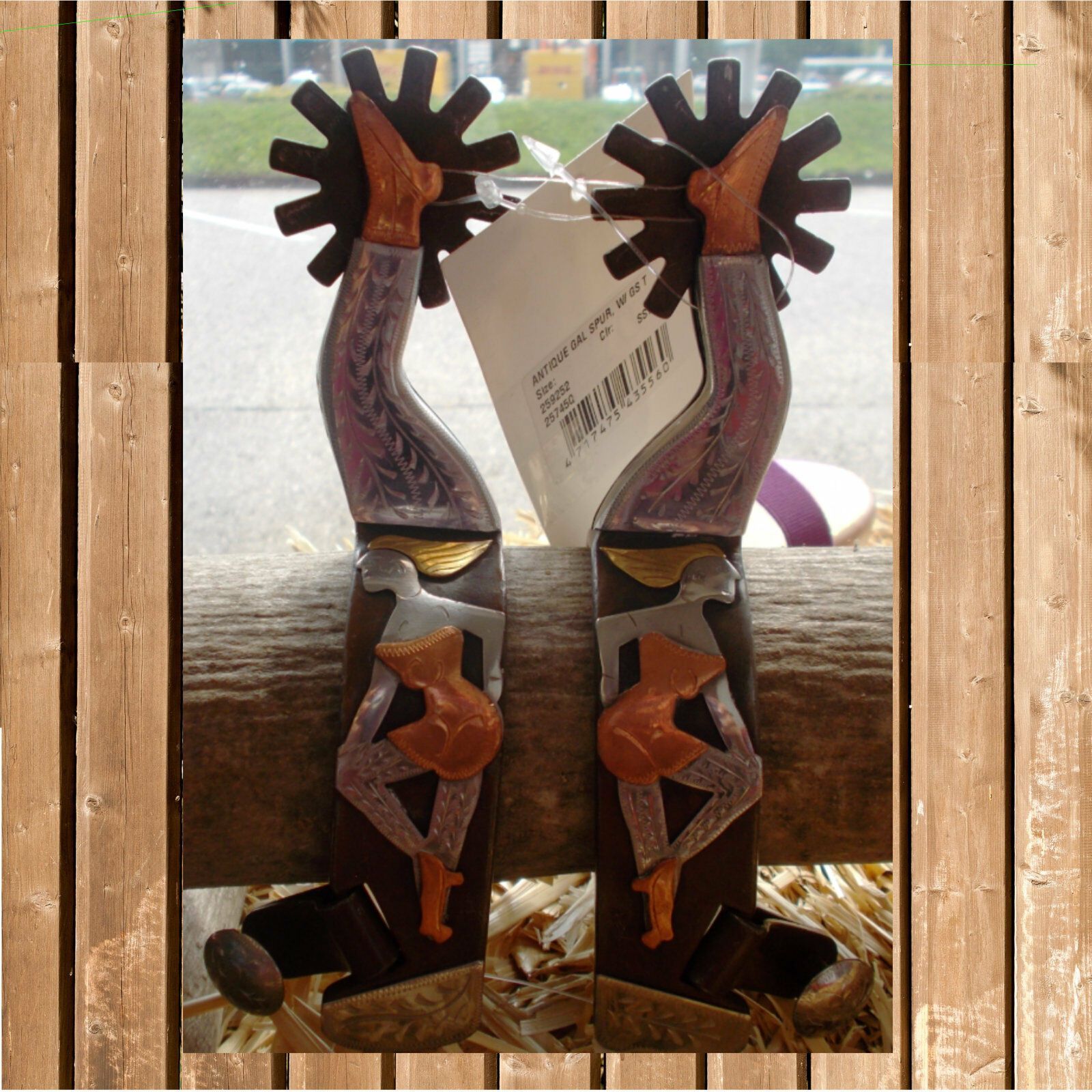 Westernsporen, Western Sporen Antique Gal, Spurs Brown Steel Silber und Kupfer
