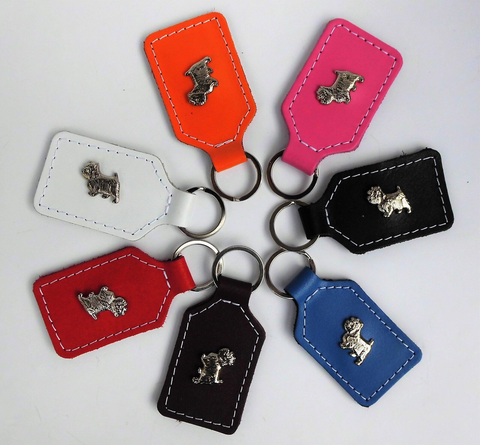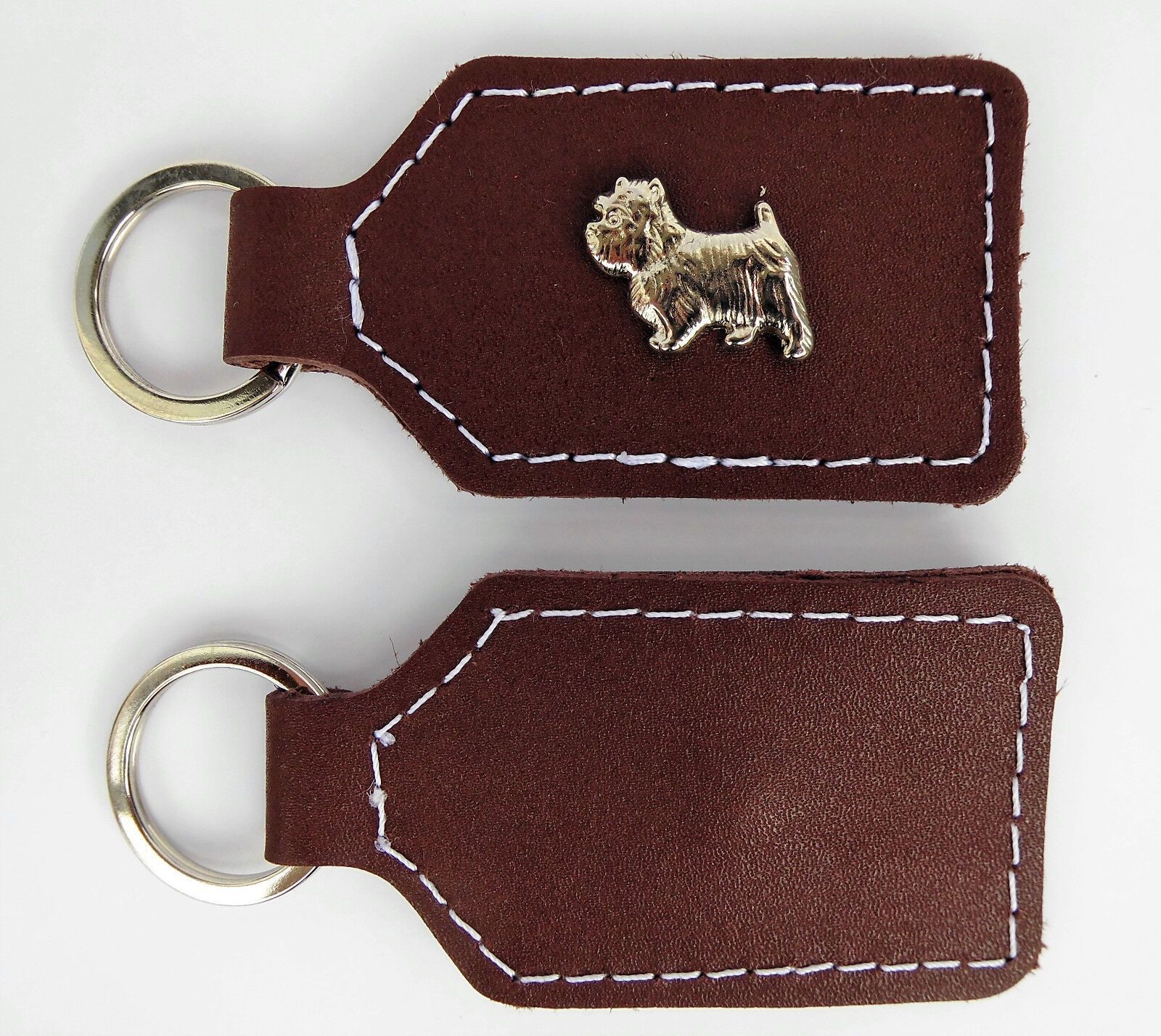 Schlüsselanhänger Metallaplikationen Echt LEDER - *** WESTIE ***BRAUN *** verschiedene Farben **** Aus Rinder Leder **** Stabiles Federring - Durchmesser 25mm **** Abmessung : 9cm x 4 cm (mit Befestigungsring) **** Sehr robust **** Verziert mit tollen Metallaplikationen**** Made in Poland Schauen Si