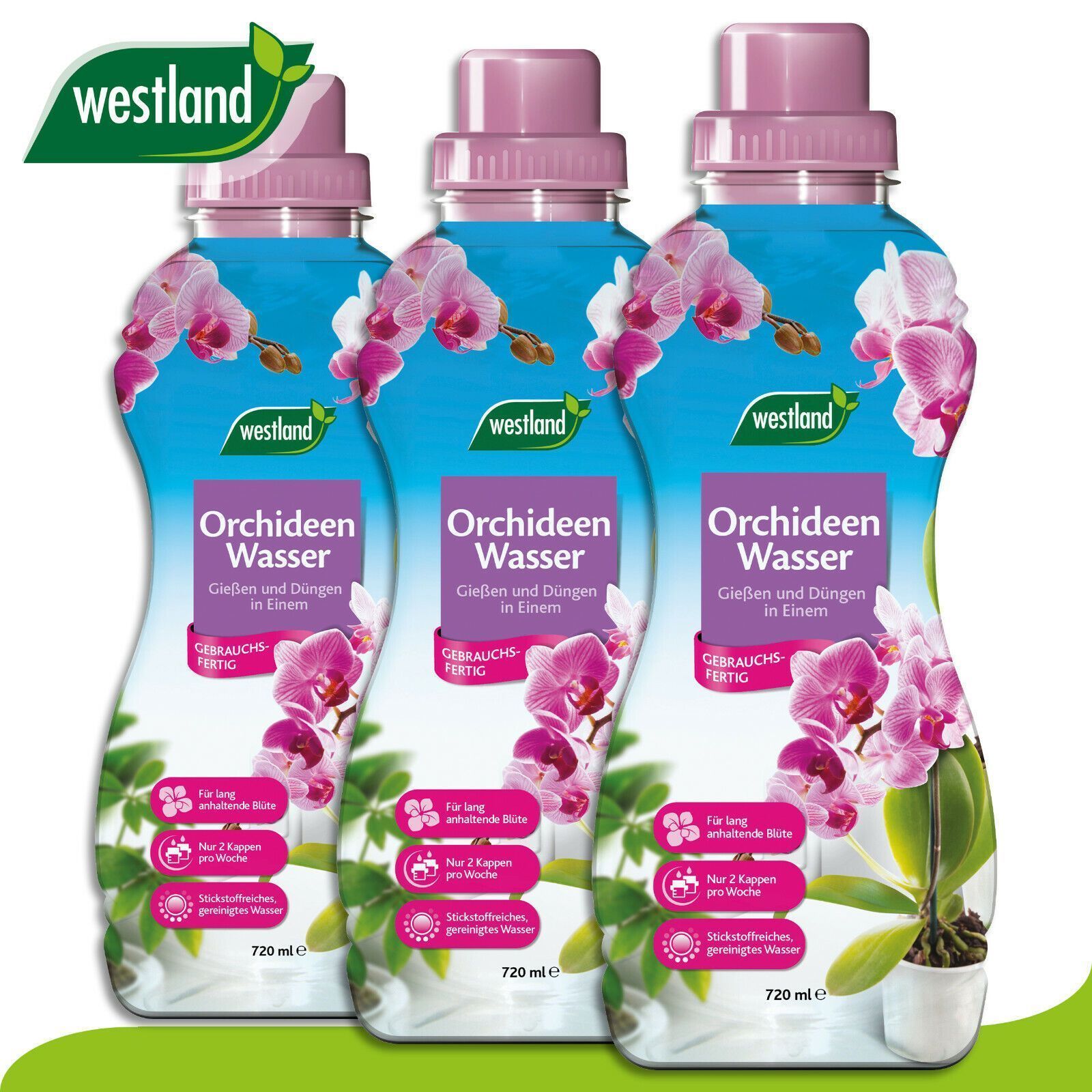 Westland 3 x 720 ml Orchideen Wasser »Die Nr 1 in England für den Garten«