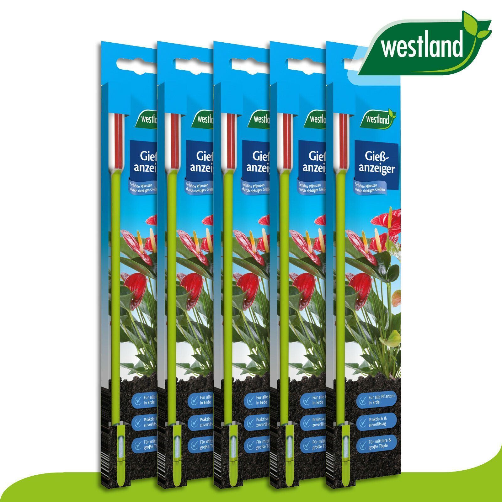 • Westland 5 Stück Gießanzeiger klein 16cm apfelgrün Messgerät Blumenkasten Beet