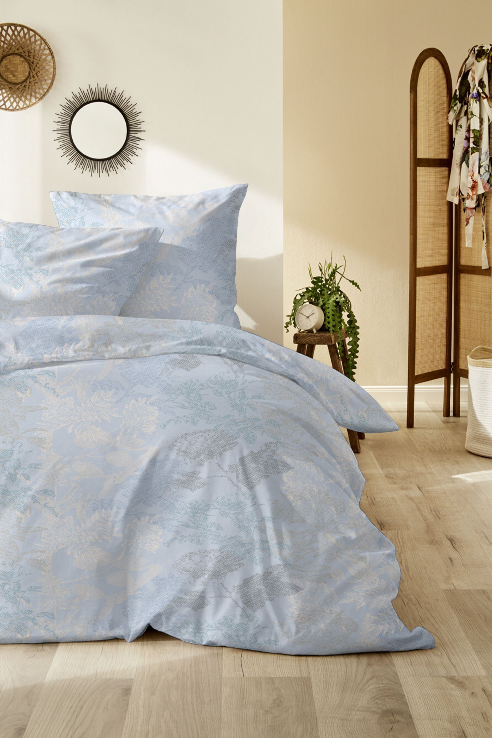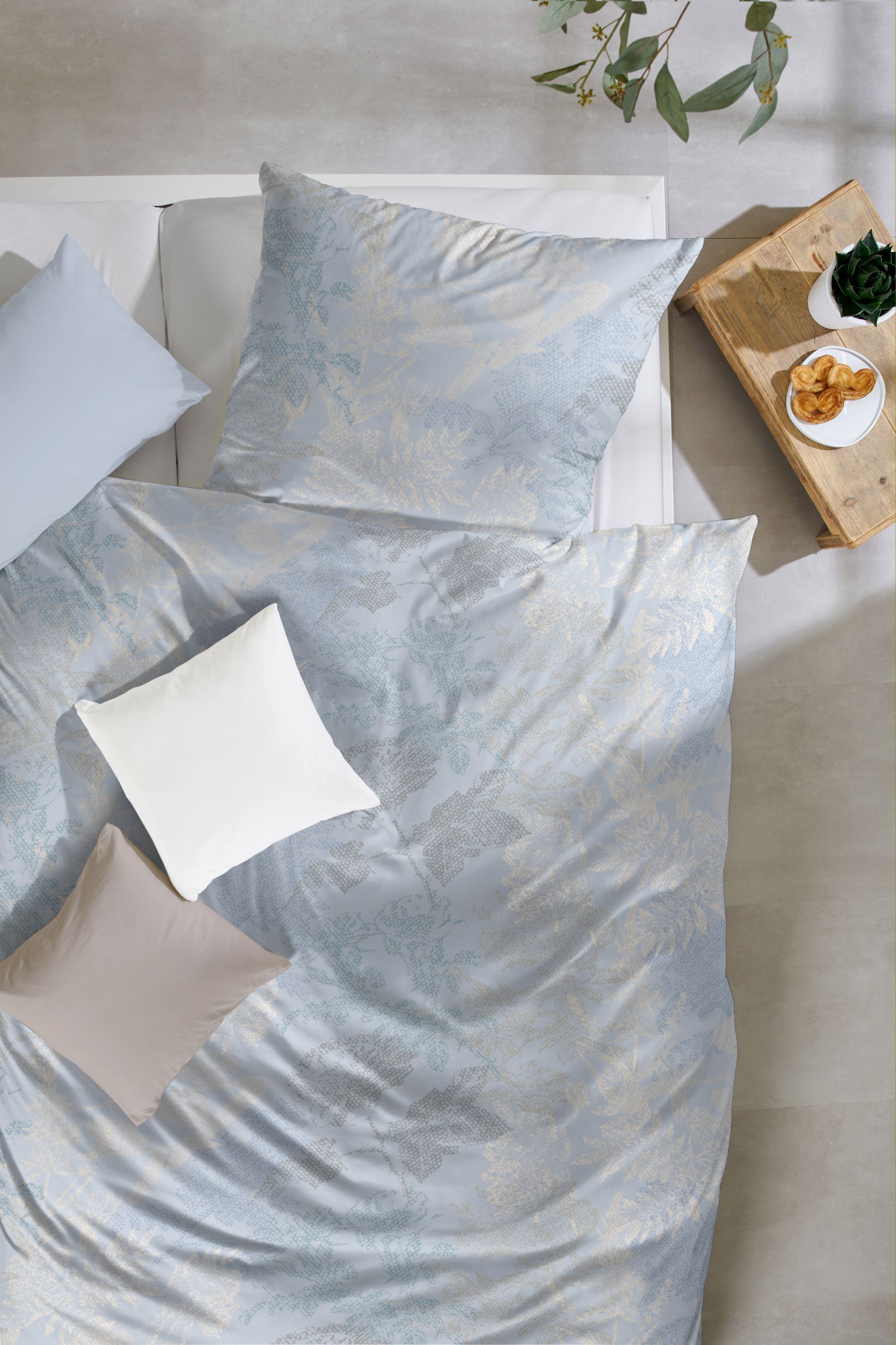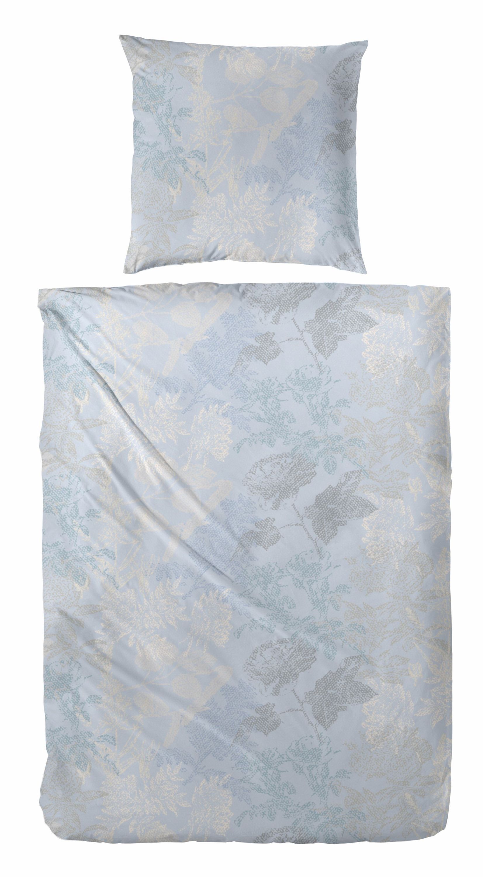 Westminster Feinbiber Bettwäsche 155x220 Rosen Zweige blau silber sand 173095-38