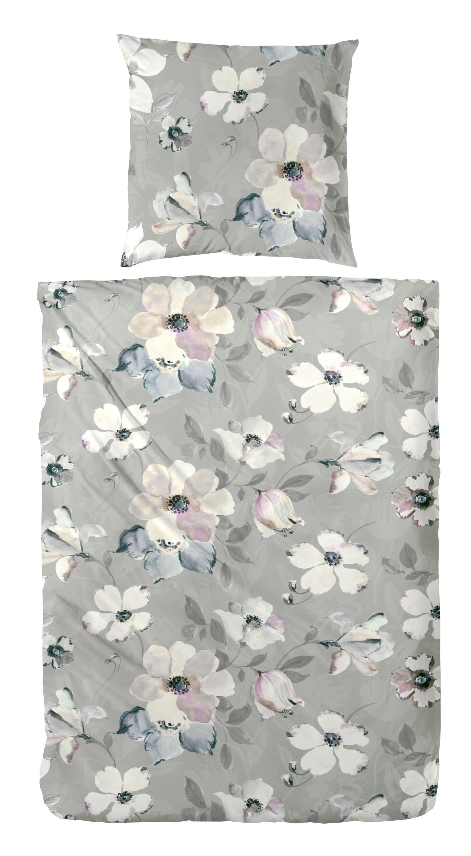 Westminster Satin Bettwäsche 135x200 Blüten Blumen flieder grau natur 242003-51