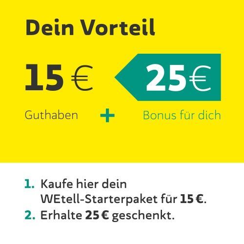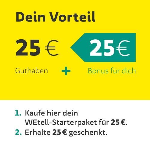WEtell Mobilfunktarife in Grün + 25 € Grundgebühr geschenkt