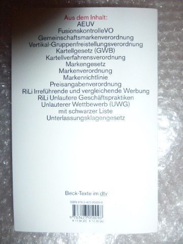 WettbR WettbewerbsR Markenrecht, Kartell Recht, Becker Text im dtv, 36. Auflage 2016