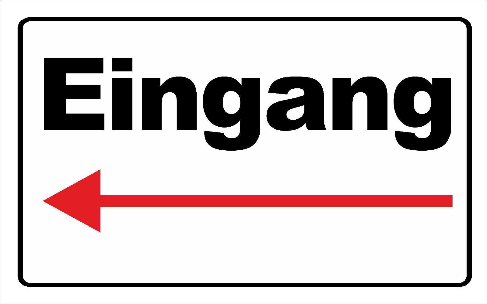 wetterfestes Schild: Eingang mit Pfeil nach Links - massives PVC-Schild