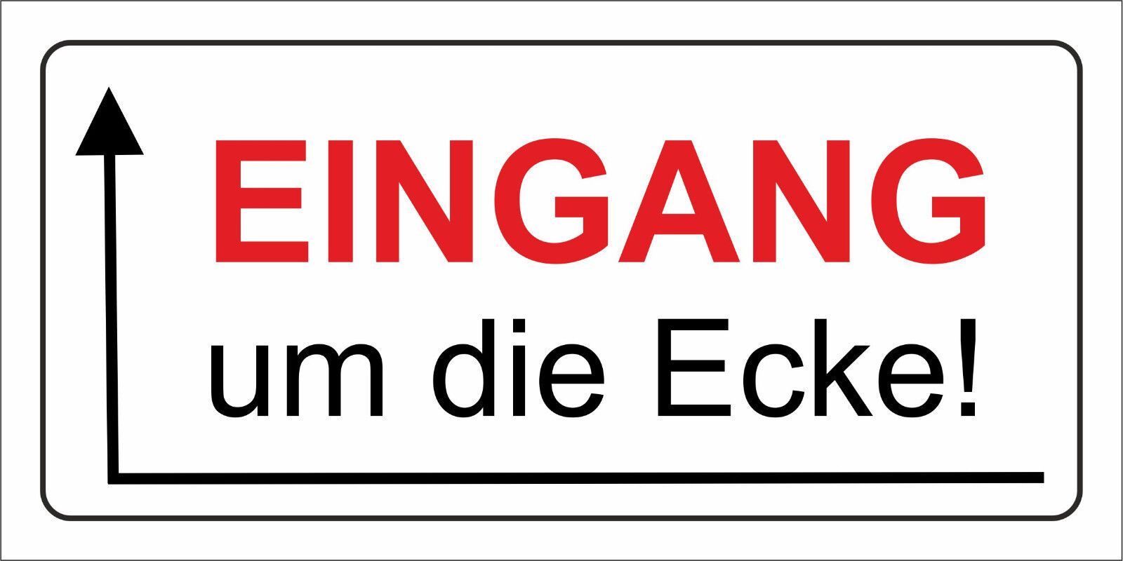 wetterfestes Schild: Eingang um die Ecke nach Links - massives PVC-Schild