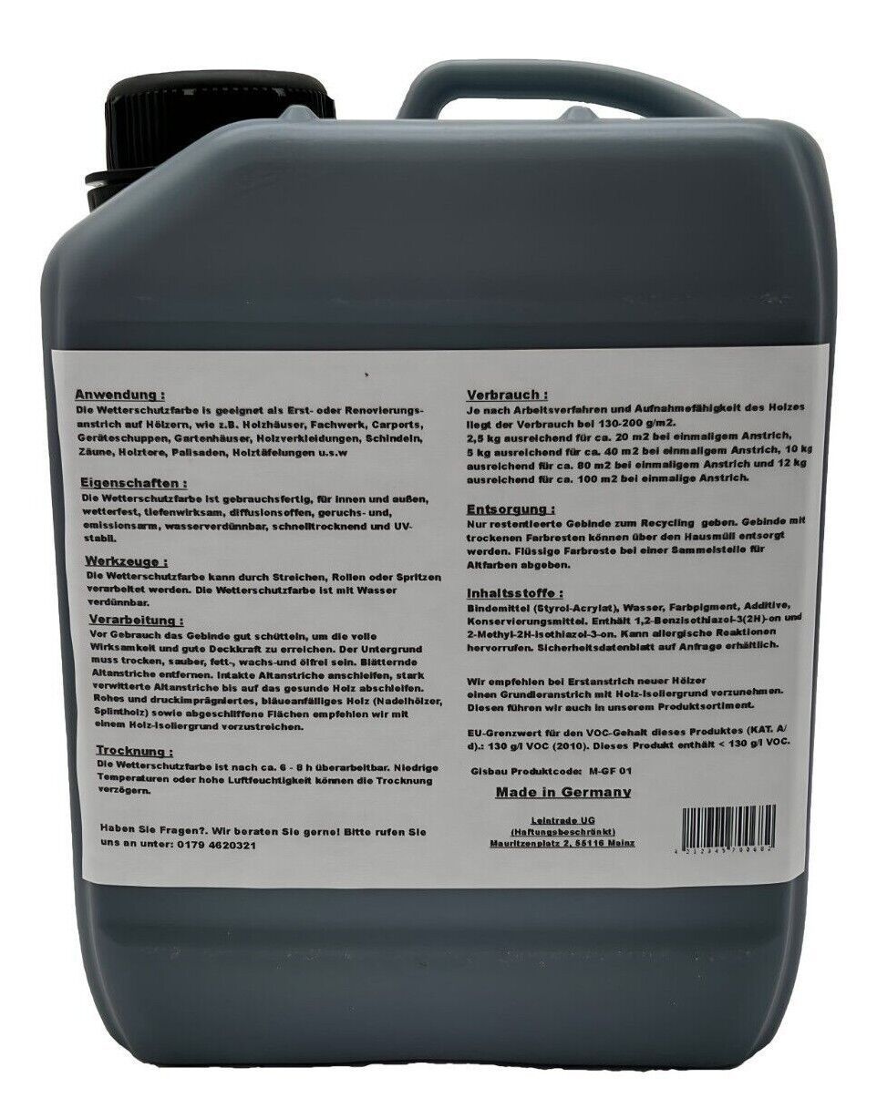 Wetterschutzfarbe Designfarbe (Holzfarbe) Premium Quality Made in Germany für Holzoberflächen im Innen- und Außenbereich Produktbeschreibung : Die Wetterschutzfarbe ist eine UV-beständige, witterrungsstabile Holzdeckfarbe auf 1-K Styrol-Acrylatbasis. Eigenschaften: Die Wetterschutzfarbe ist gebrauch