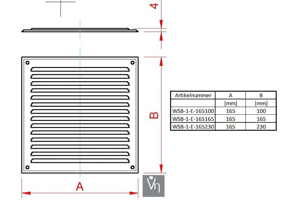 Wetterschutzgitter Lüftungsgitter Kiemenblech Edelstahl WSB-1-E