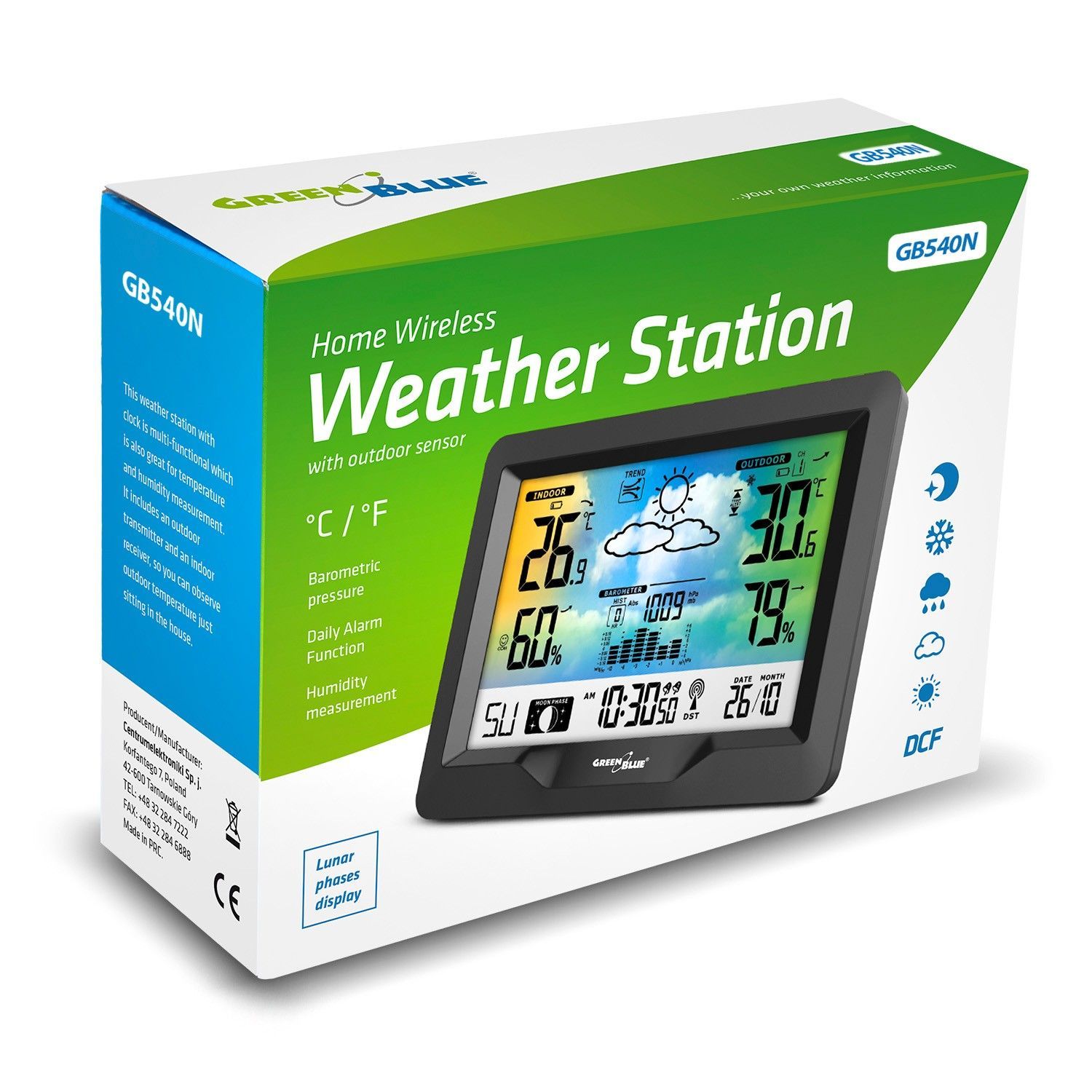 Wetterstation Hygrometer Barometer DCF Mondphase GB540N GreenBlue