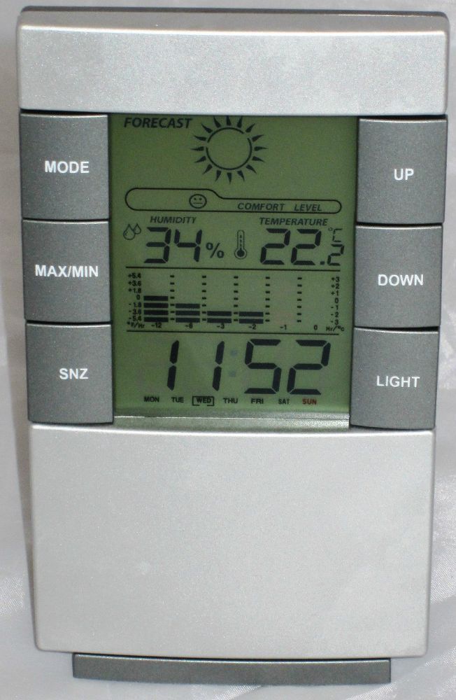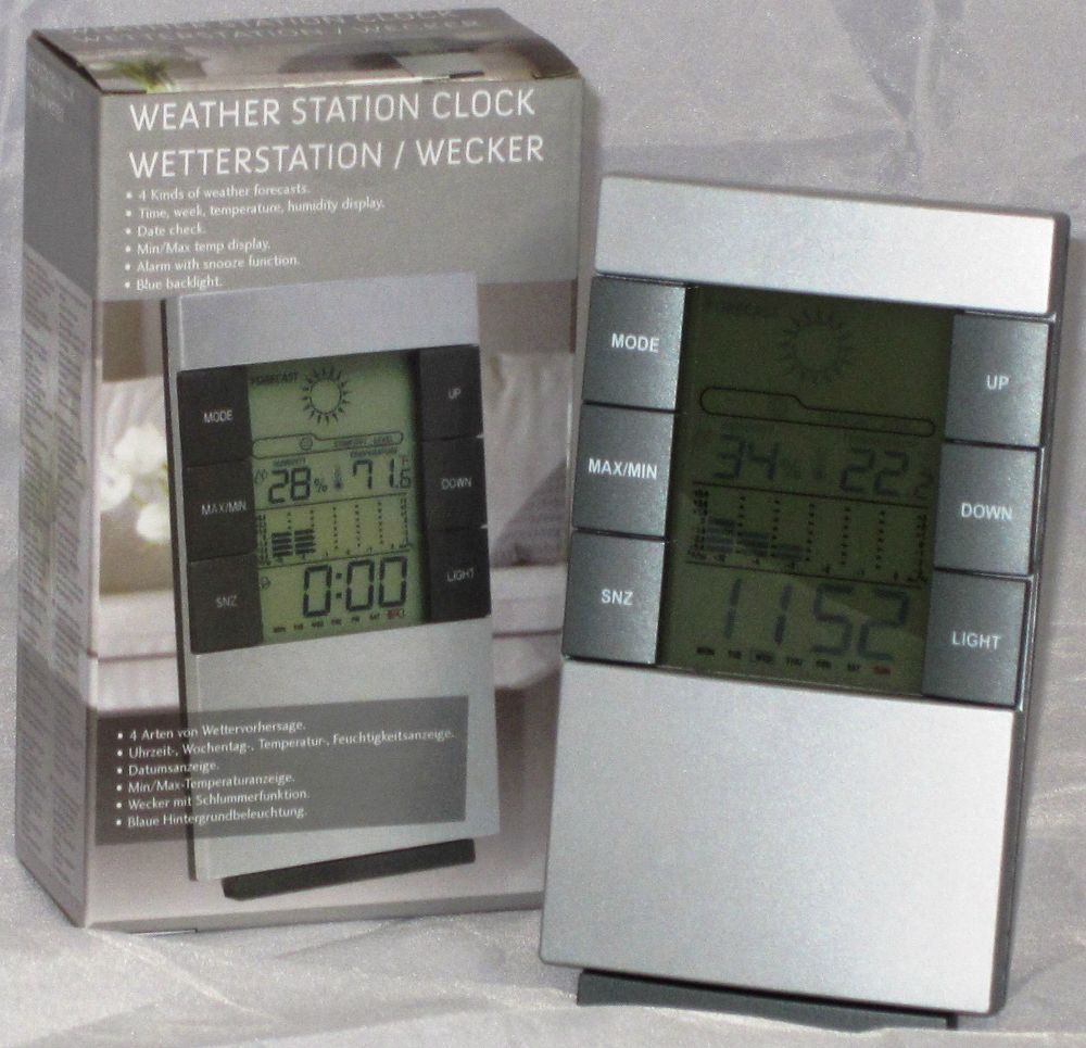 Wetterstation Wecker Hygrometer Thermometer Digitaluhr Uhr in Silber