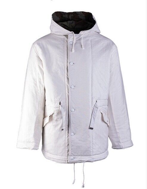 WH Wendejacke Repro Neuanfertigung einer Winterwendejacke der Wehrmacht. Der Winterparka hat zwei Taschen mit Patten, die von beiden Seiten genutzt werden können. Der Mantel hat eine breite, überlappende Knopfleiste mit Metallknöpfen und eine Kapuze. Die Taillenweite ist durch ein Zugband regulierba