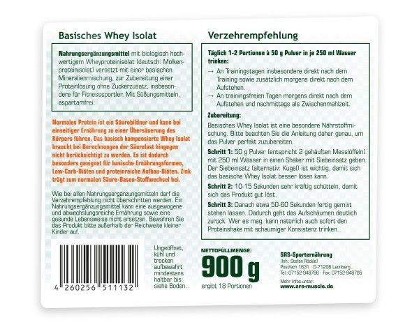 SRS Nutrition WHEY ISOLAT Basisch SRS Nutrition