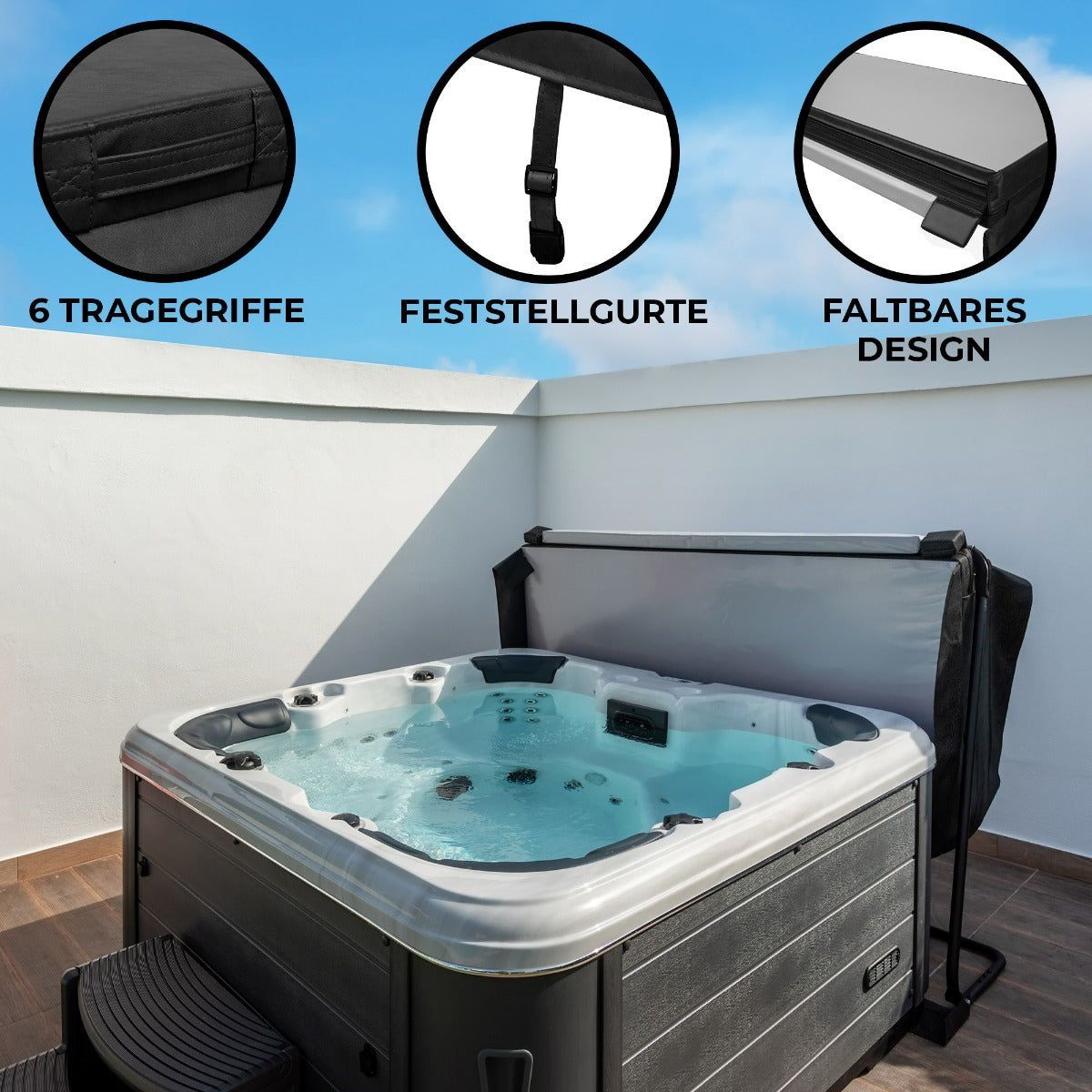 Whirlpool Abdeckung Spa 2x2m Quadratisch Schwarz Hardtop Wetterfest PVC-Leder