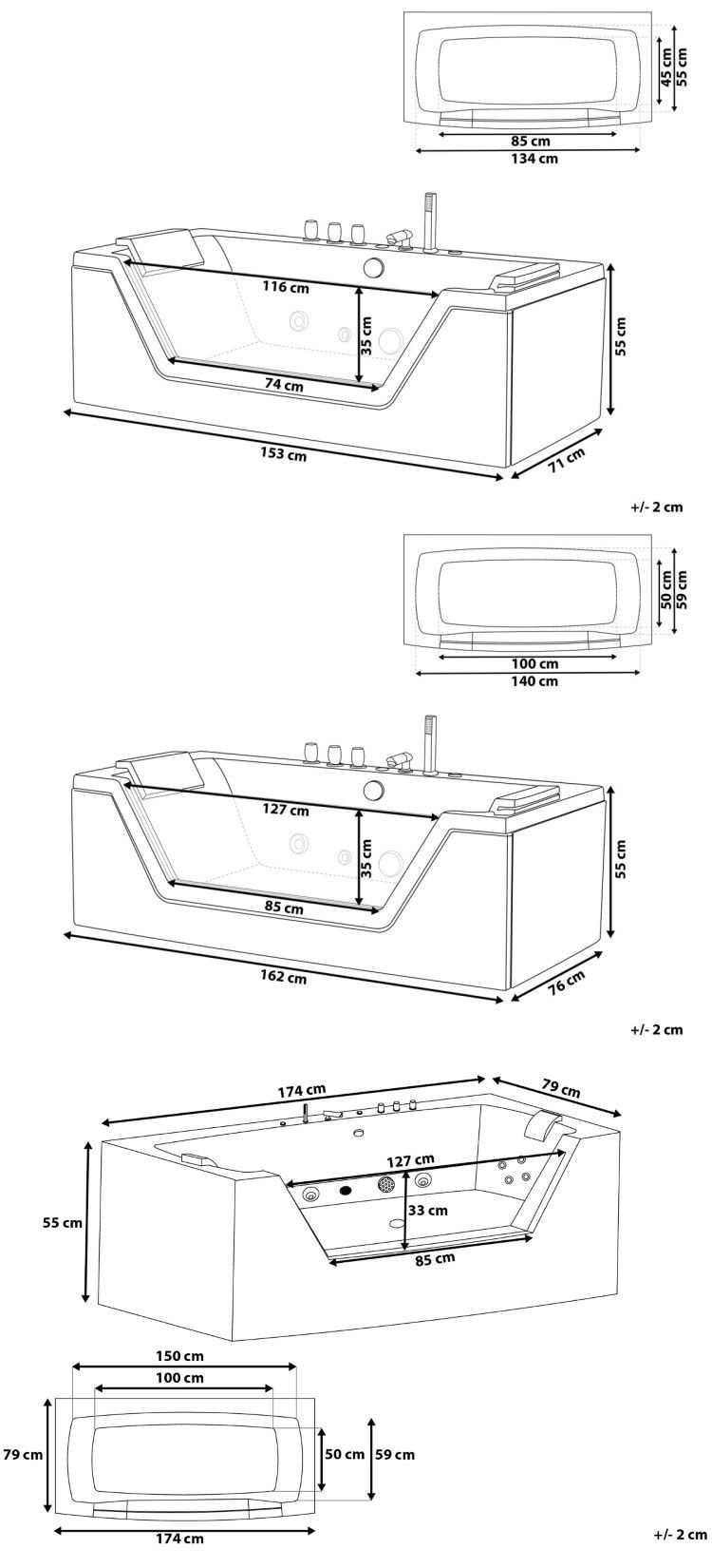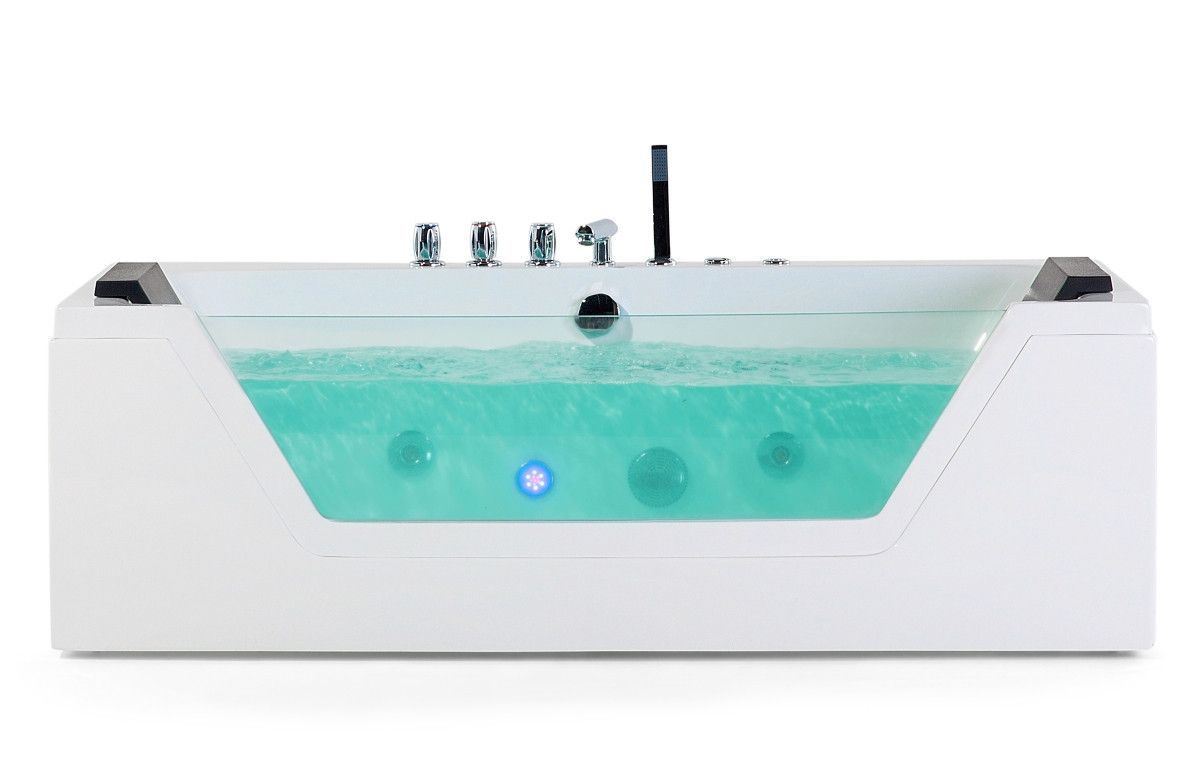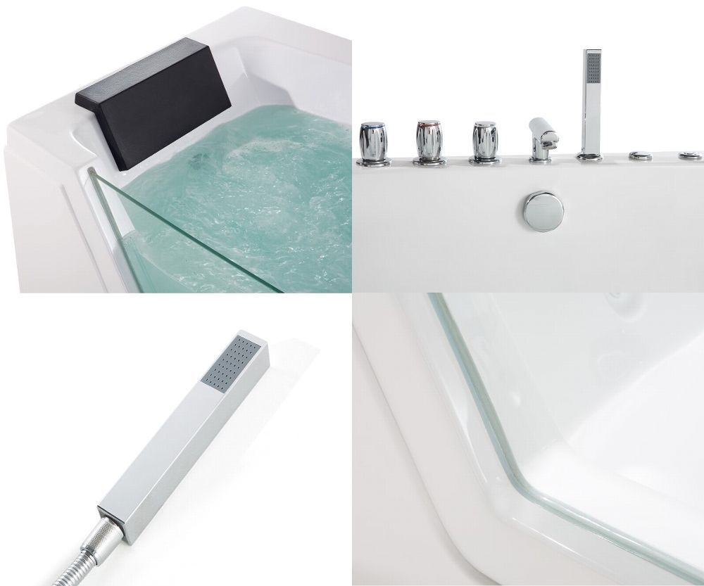 Whirlpool Badewanne mit 10 Massage Düsen LED Glas Eckwanne Luxus Spa günstig 3 Maße