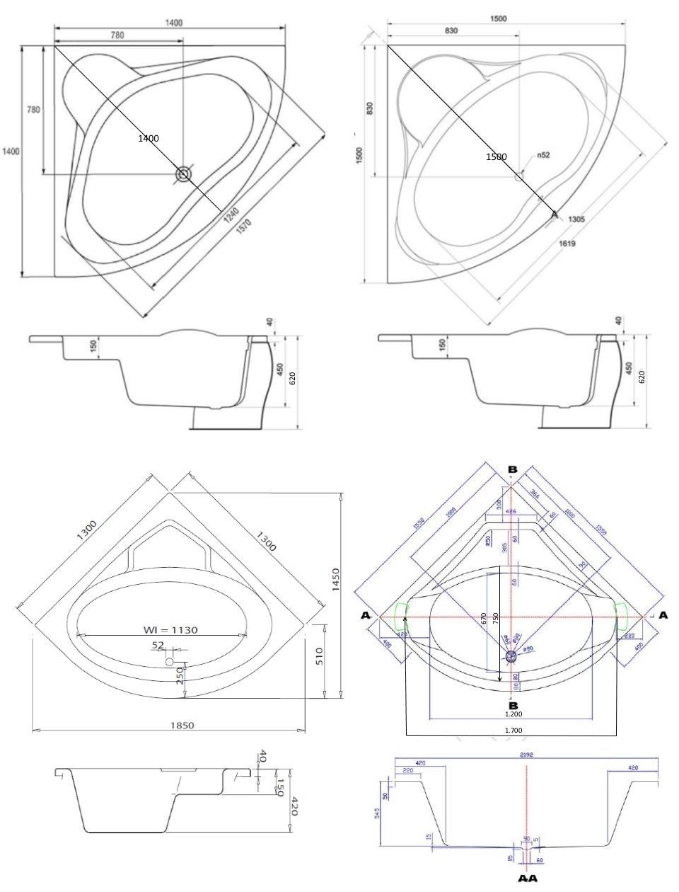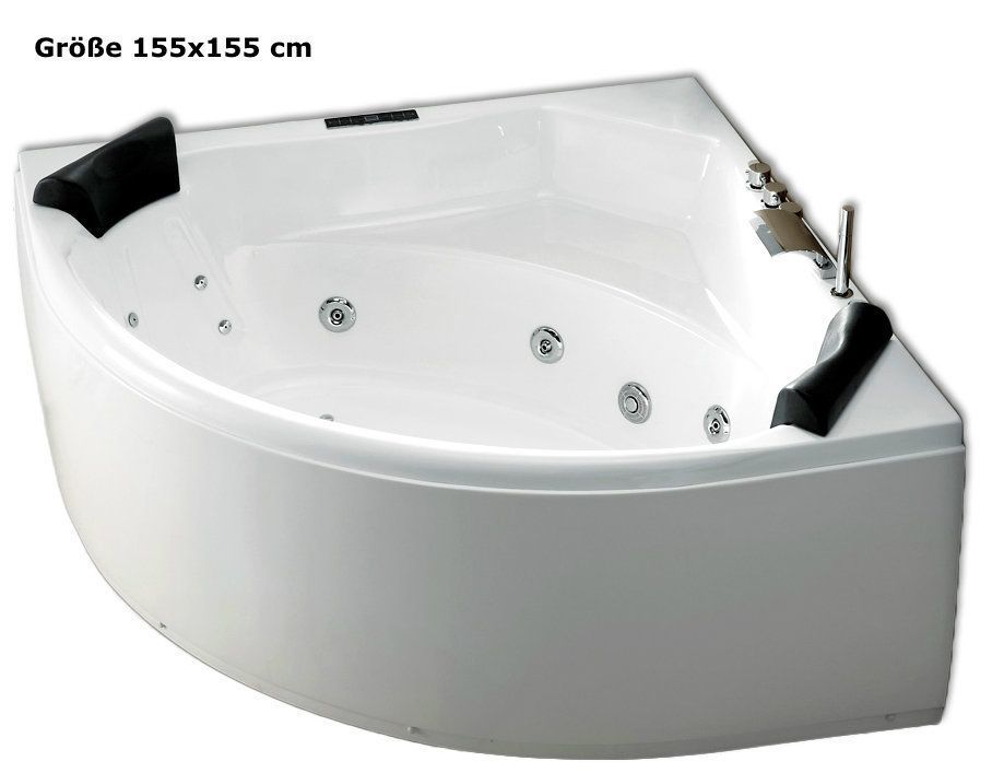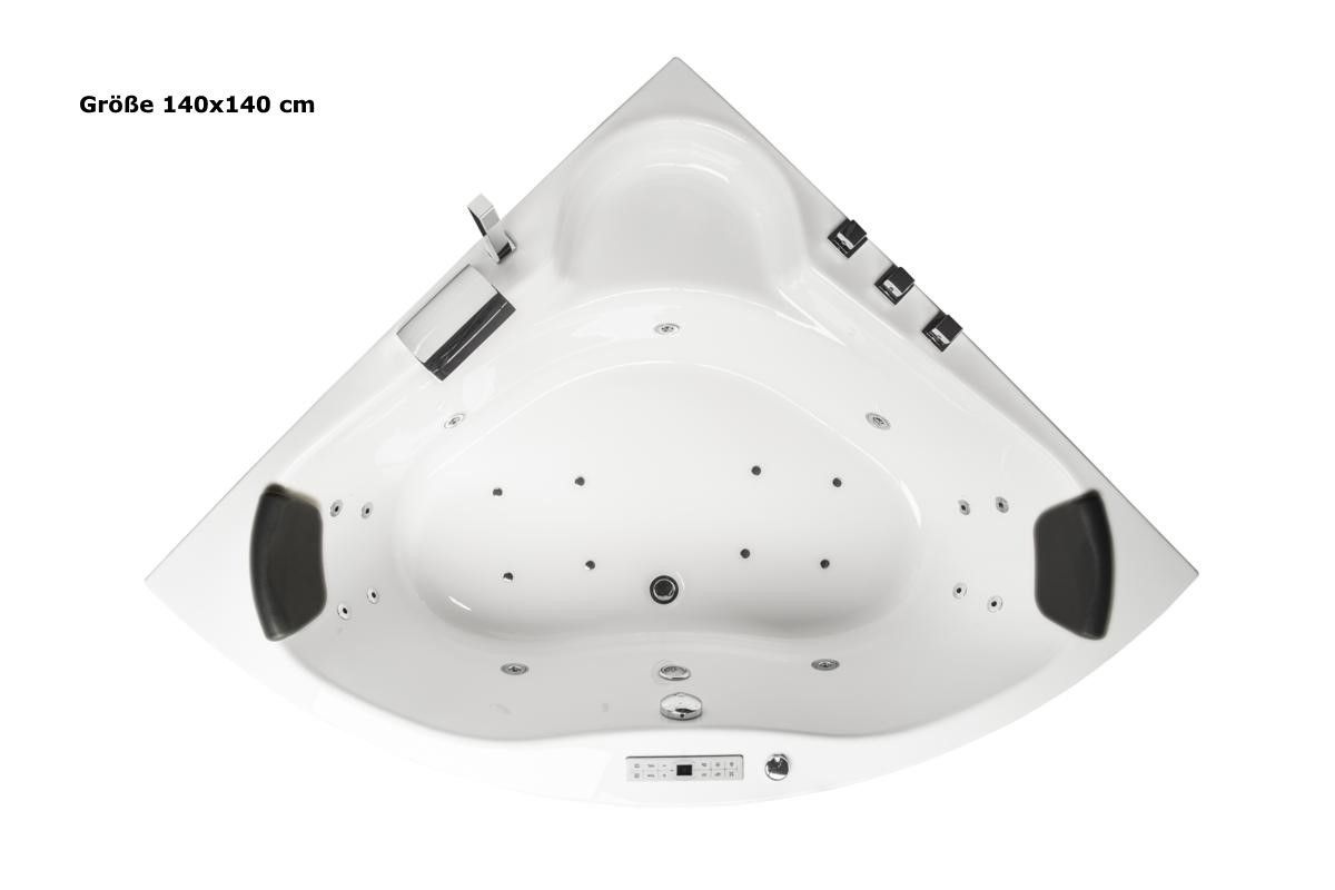 Whirlpool Badewanne mit 21 / 25 Massage Düsen Heizung Ozon Eckwanne Made in Germany
