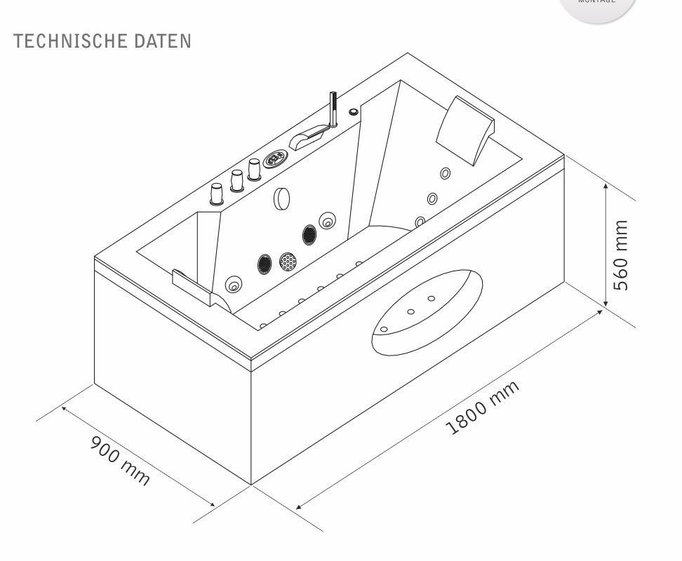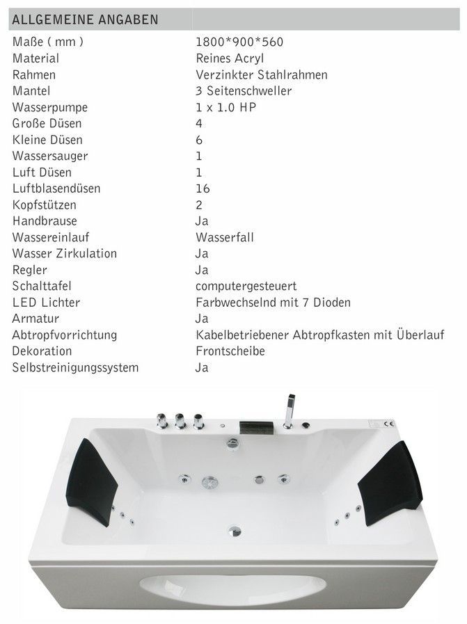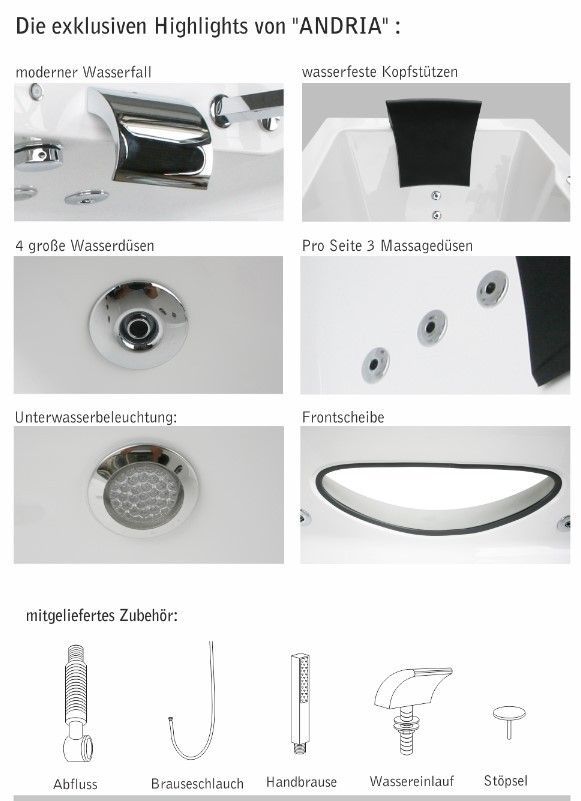 Whirlpool Eckbadewanne Badewanne Wanne Spa Home 2 Personen Whirlwanne LED Andria
