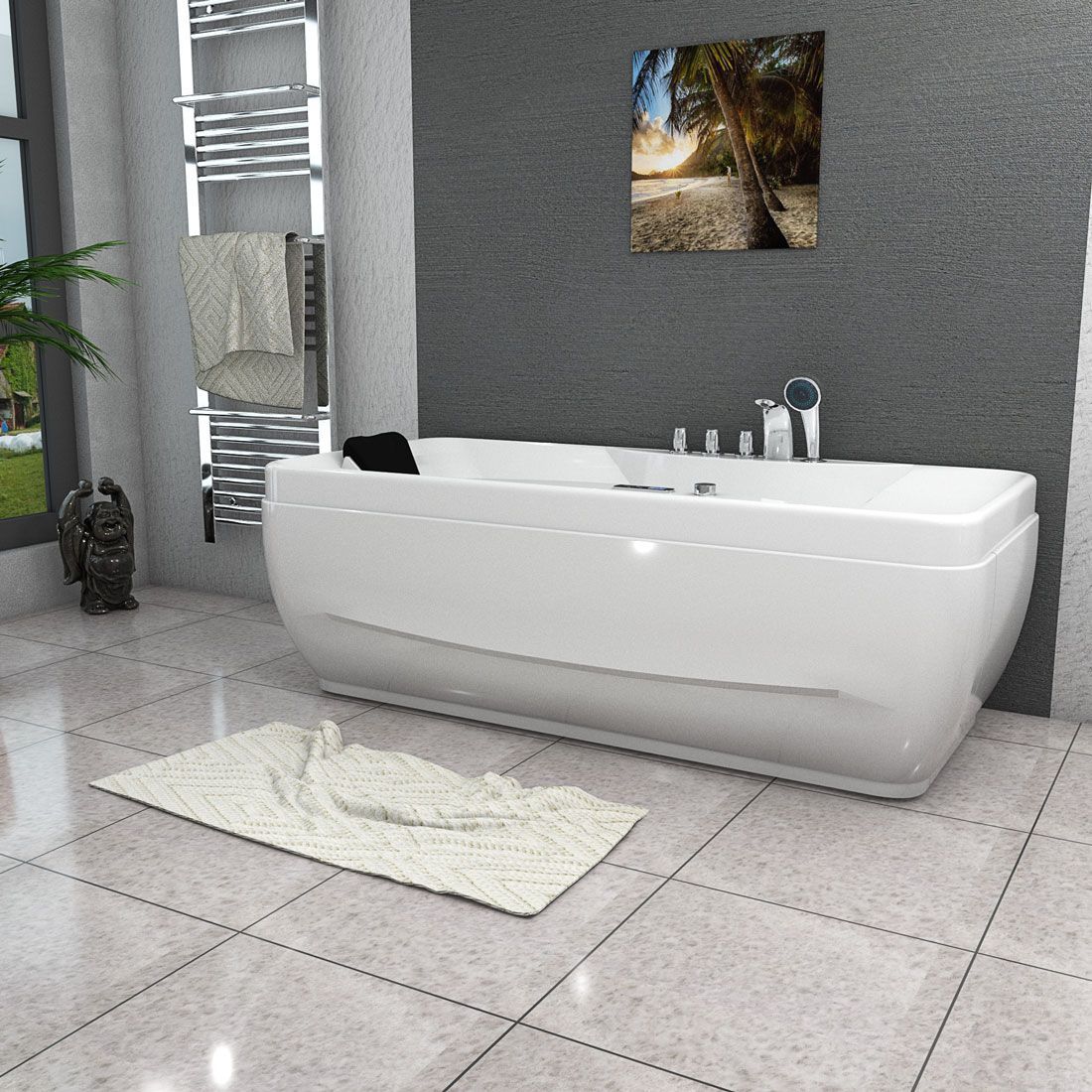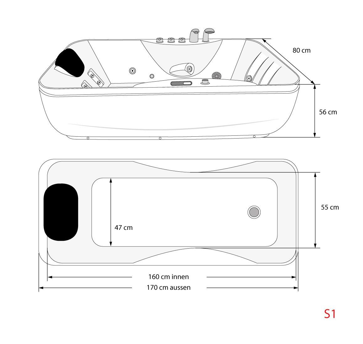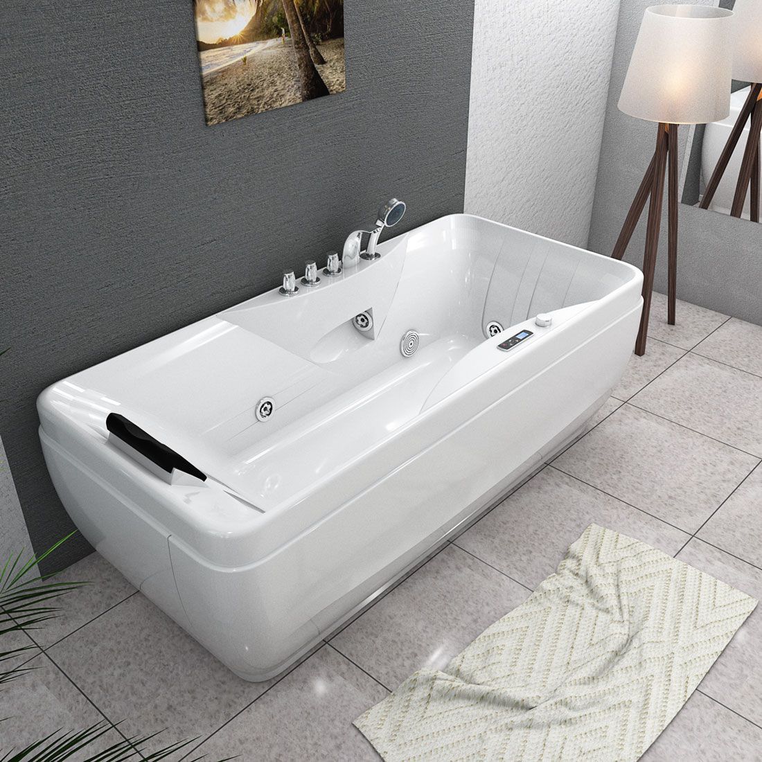 Whirlpool Vollausstattung Pool Badewanne Wanne W49H-TH-PL 170x80cm Reinigungsfunktion