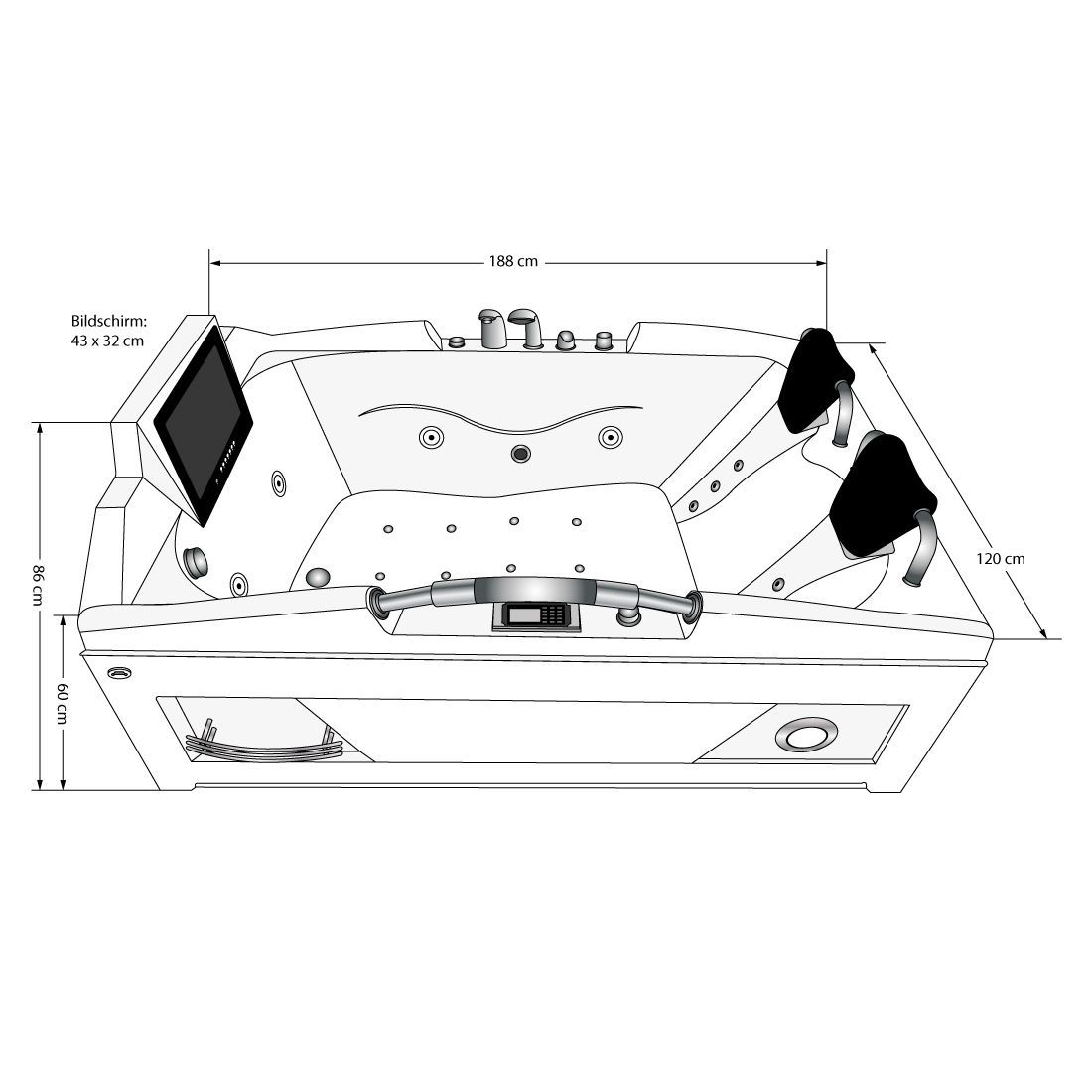 Whirlpool Vollausstattung Pool Wanne Eckwanne mit TV T18R-TH 120x188cm