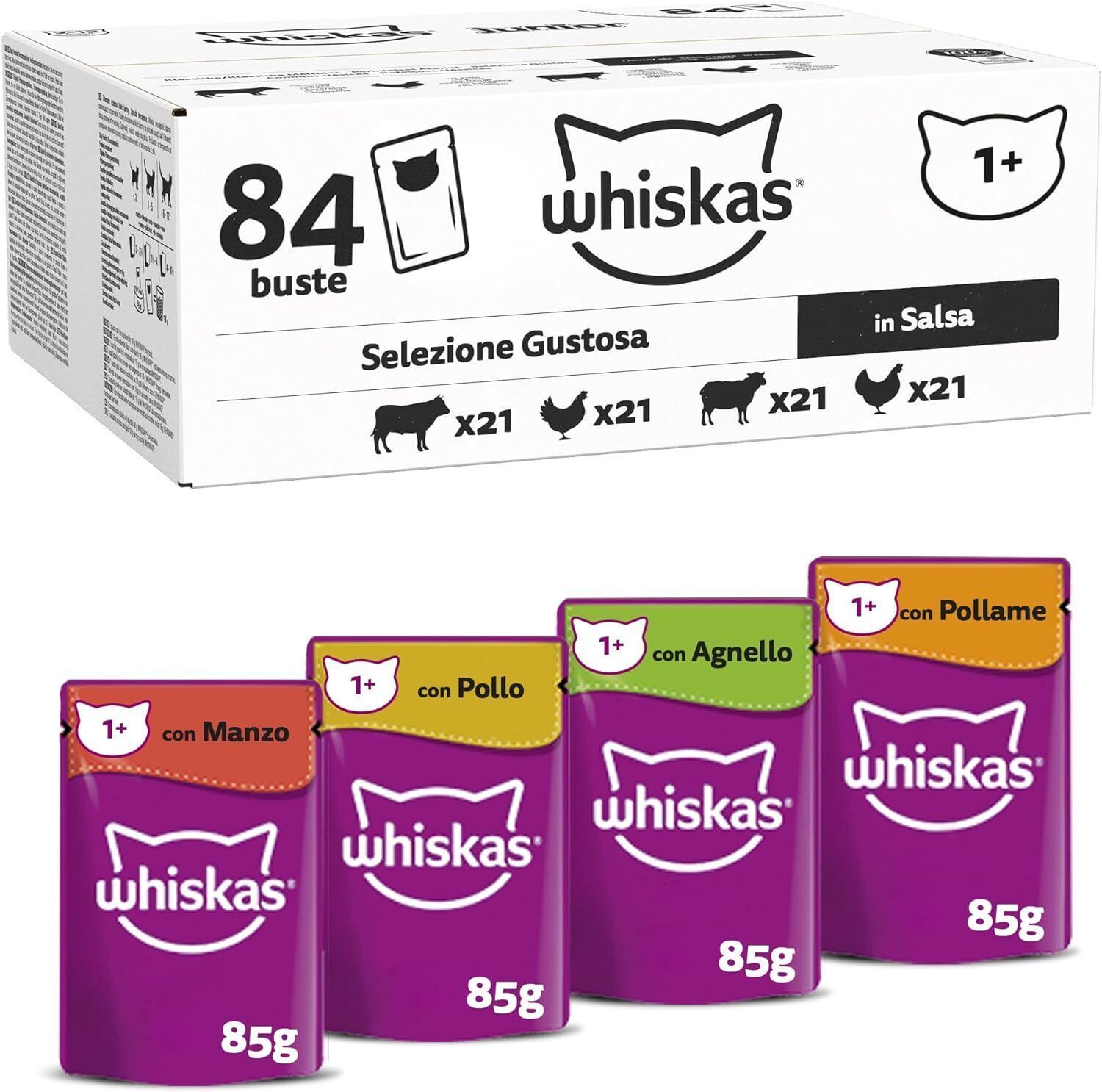 Whiskas 1+ Katzennassfutter Klassische Auswahl in Sauce Großpackung 84 x 85g