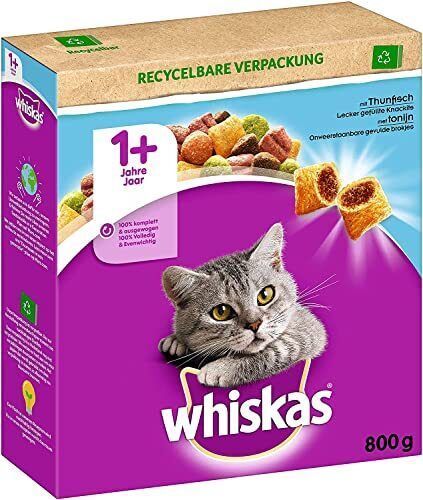 Whiskas Adult 1+ Trockenfutter Katzenfutter Ausgewogen Thunfisch 5 x 800 g
