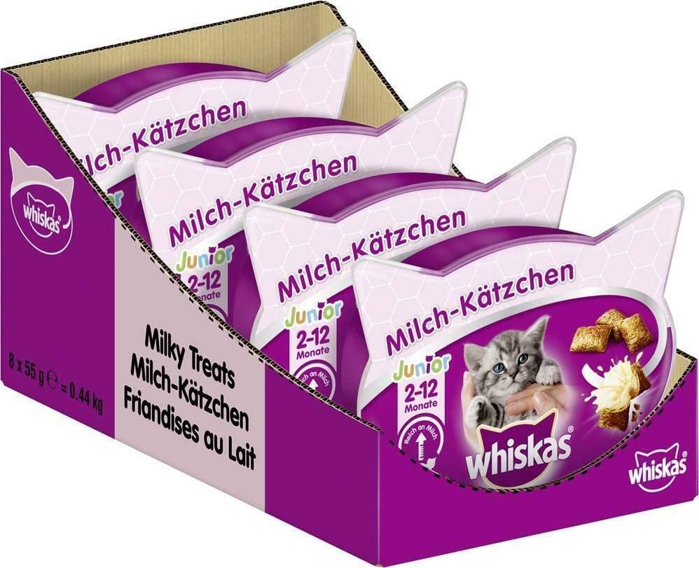 Whiskas Junior Milchkätzchen Katzensnacks Leckerli Junge Katzen 8 Pack 8 x 55 g