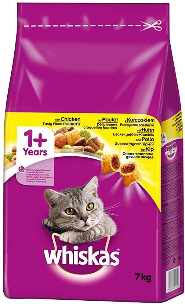 Whiskas Katzenfutter Trockenfutter Huhn Adult 1+ Knackits Leckerli Snack 7kg